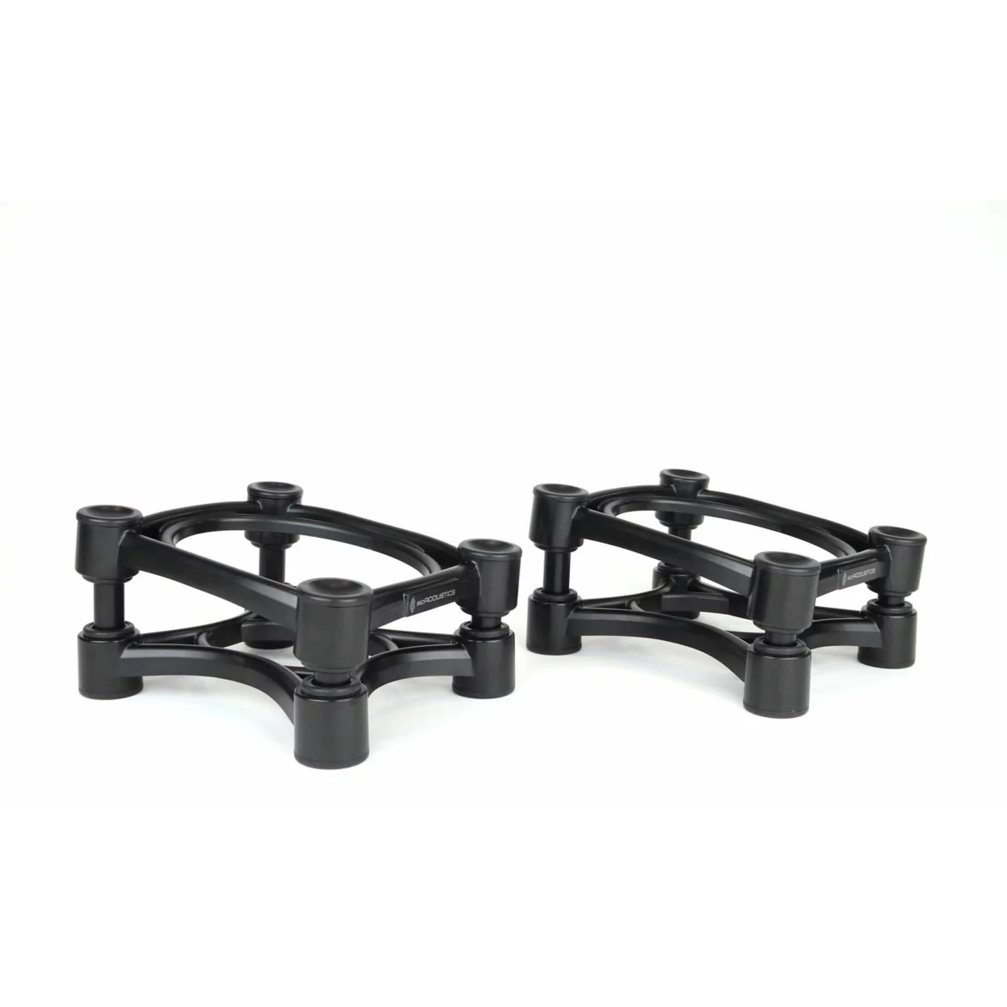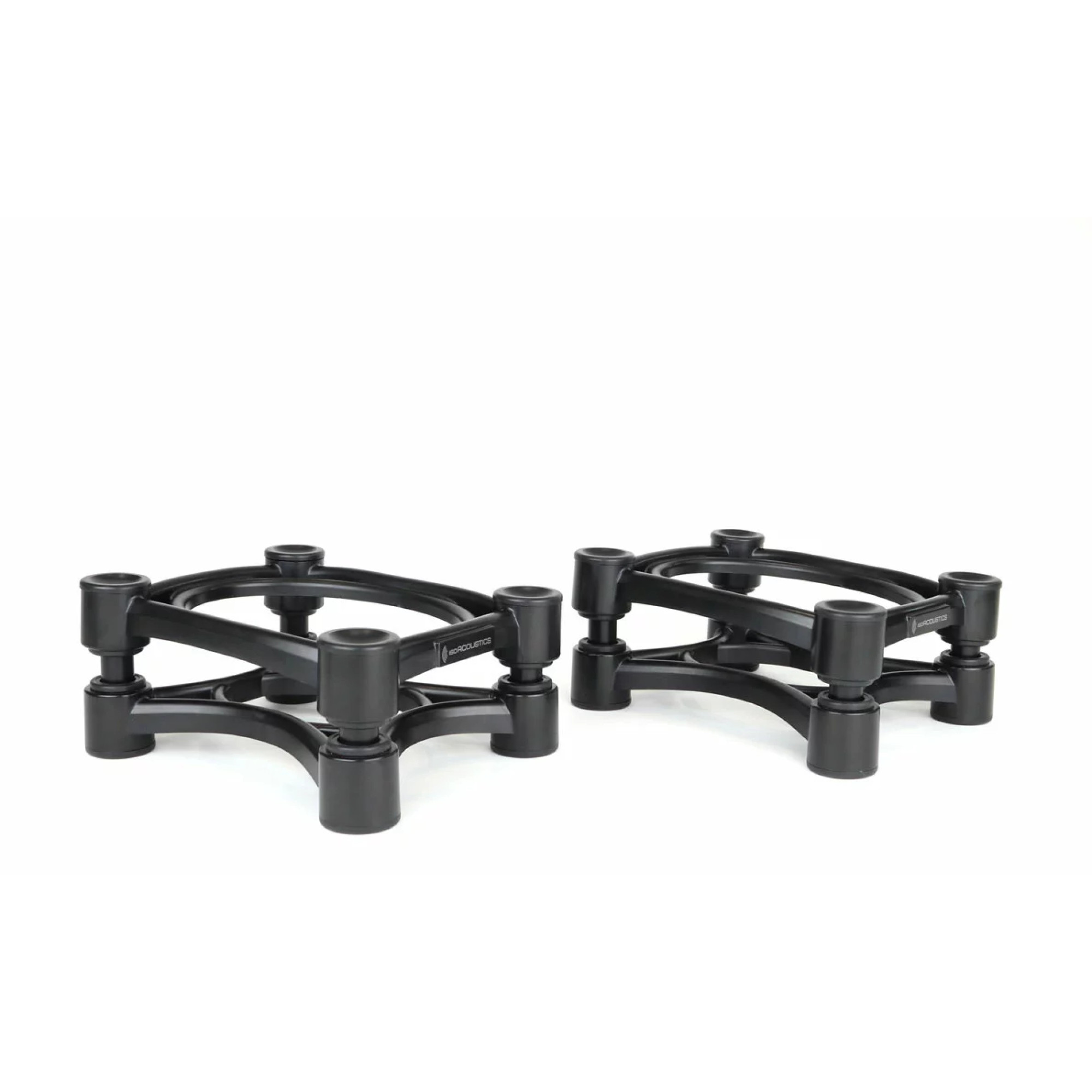 The IsoAcoustics ISO-155 isolation stands are designed for medium size speakers and studio monitors. A practical and effective solution for desktop, bookshelf and floor standing speakers. The IsoAcoustics patented isolation system provides superior isolation and decoupling from the supporting surface. The stands are a complete kit to optimize your speaker placement and performance by assembling them in the short or tall configuration and setting the desired upward or downward tilt. The ISO-155 stands have an overall size of 6,1”x7,5” (155x190 mm) and can be configured to an overall height of 3,7” or 8,75” (9,5 сm or 22,5 сm) with inserts that provide up to 6,5 degrees of tilt upwards or downward. Altogether, up to 14 variations of height and tilt adjustment are available to optimize speaker placement.