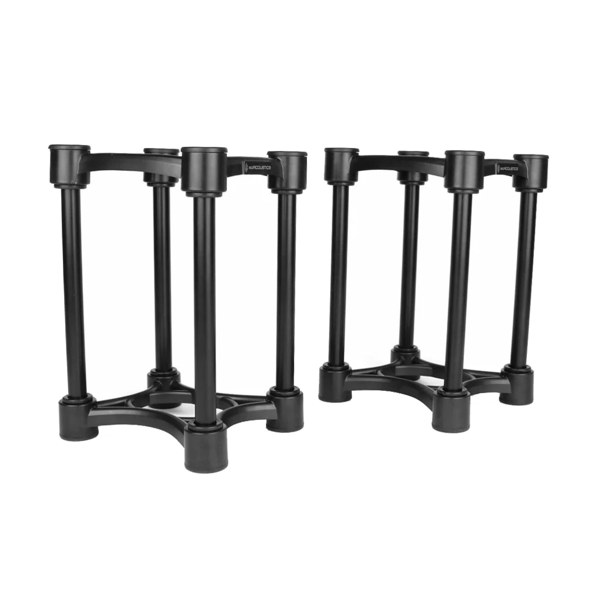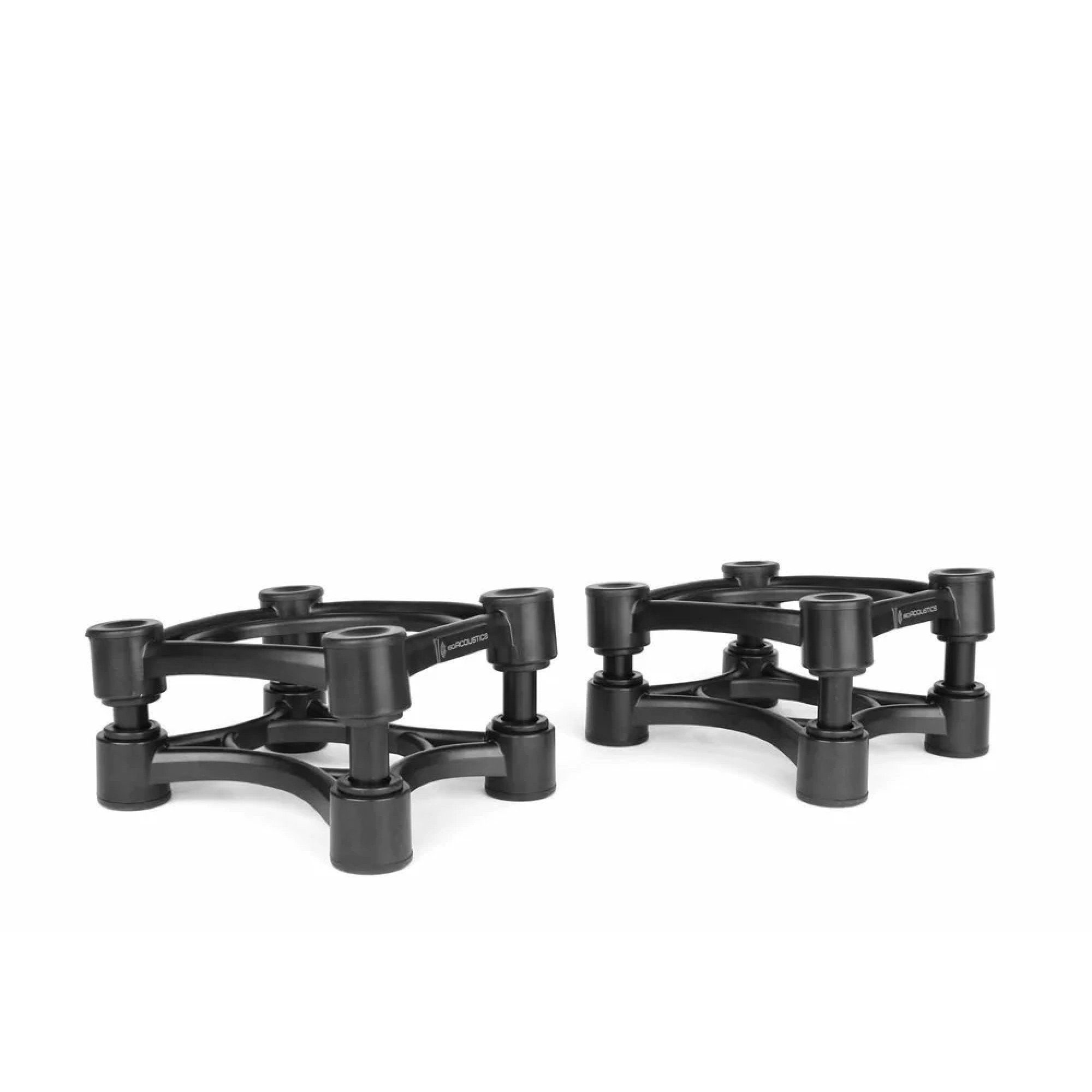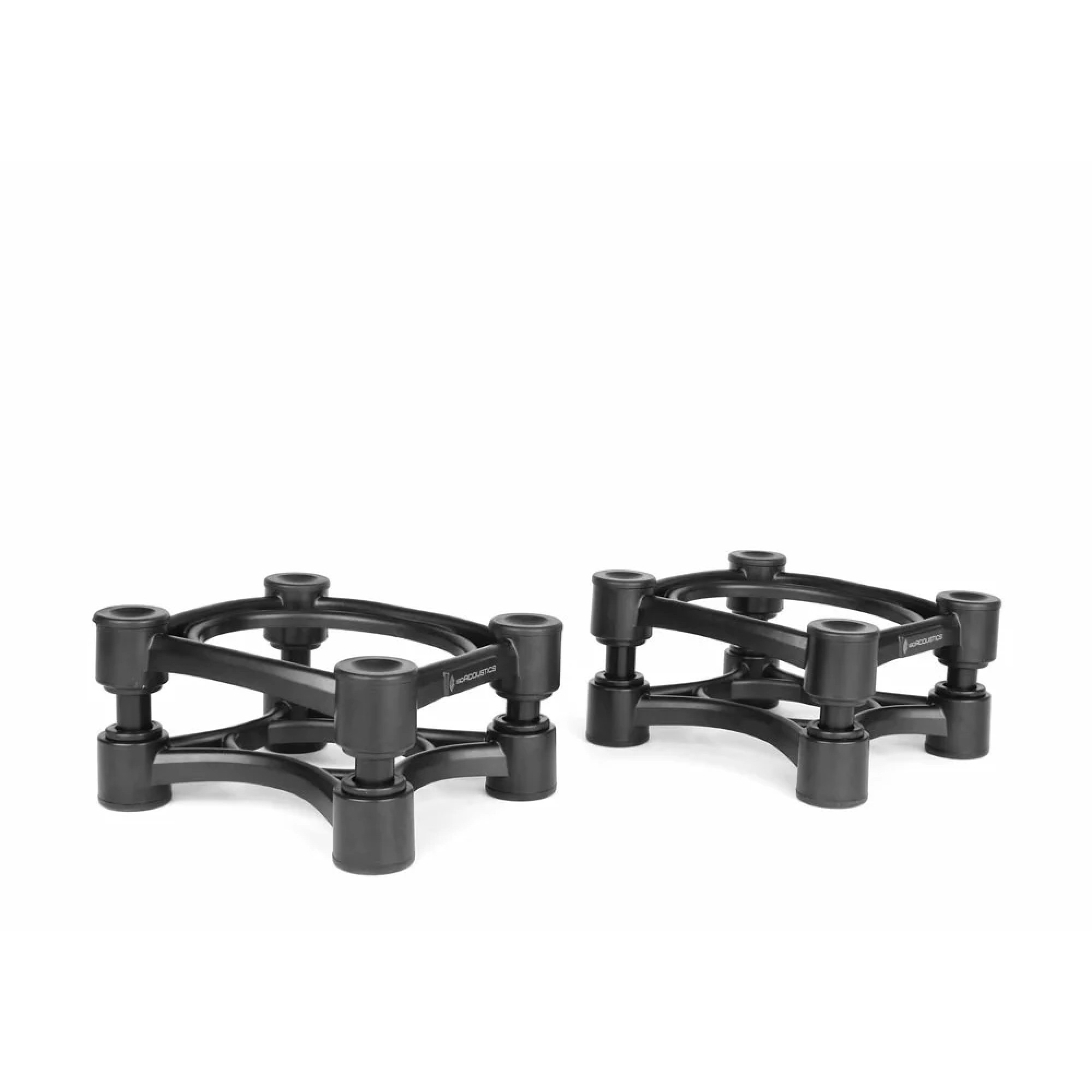 The IsoAcoustics ISO-130 isolation stands are designed for small speakers and studio monitors. A practical and effective solution for desktop and bookshelf applications. The IsoAcoustics patented isolation system provides superior isolation and decoupling from the supporting surface. Customers can choose between the short and tall configurations that are included in the package. Assembled in the short configuration and using the tilt settings to focus the studio monitors on the listening position or assembled in the tall configuration to bring the studio monitors up to ear level and tilted to optimize the focus.