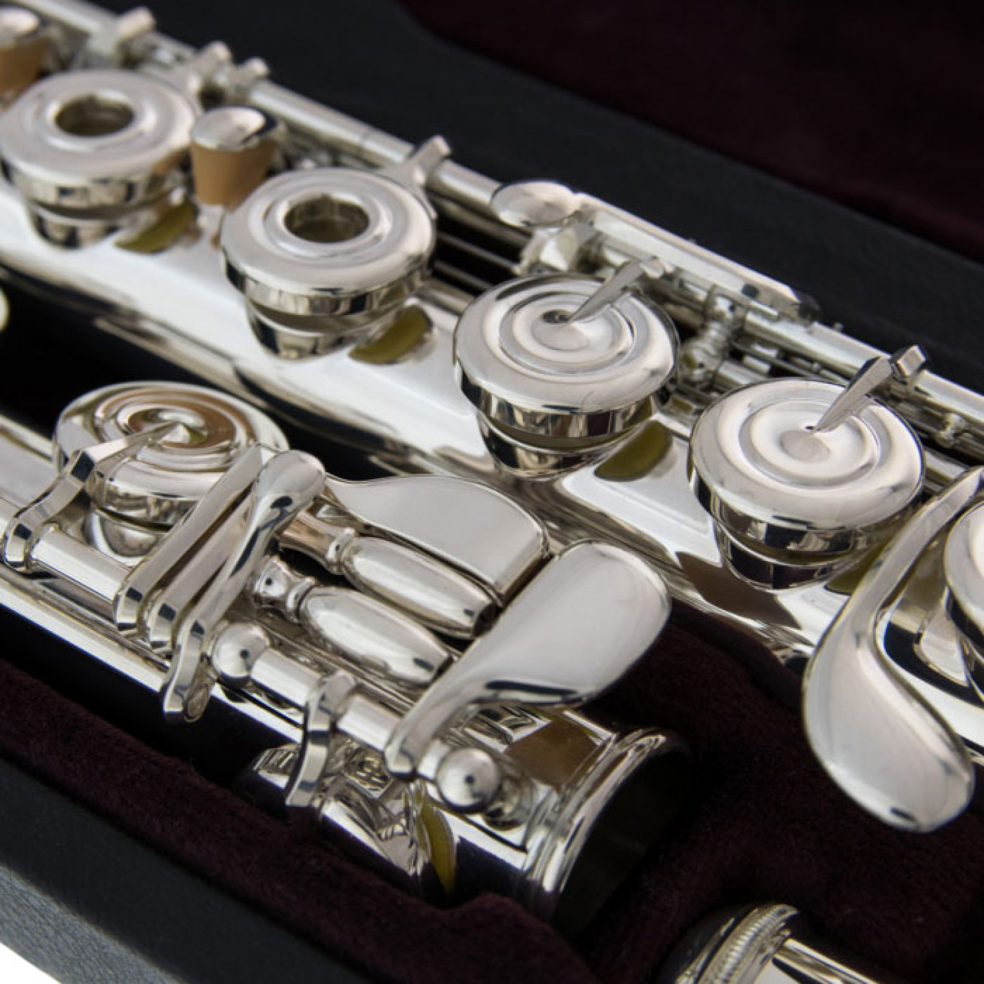 Massive valve axles with a modified shape allow for increased reliability and quality of axle attachment, and the shape and location of the Yamaha YFL-382 valves are designed for natural hand position and playing comfort. Yamaha's unique setup screws allow for easy valve adjustment, providing stability and unique sound control.