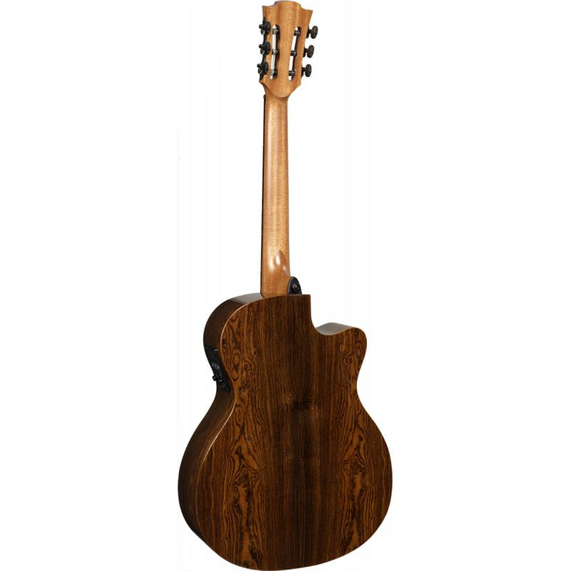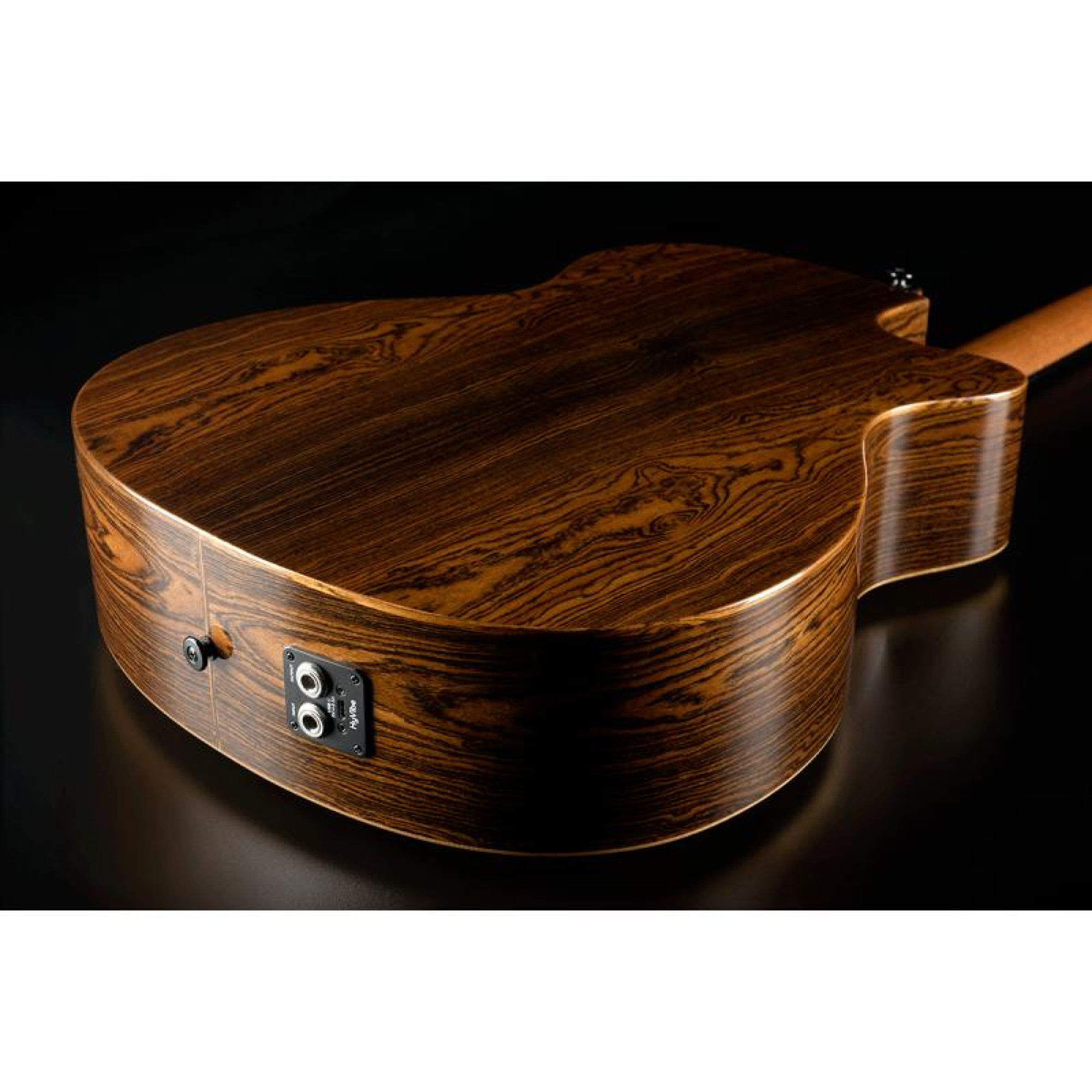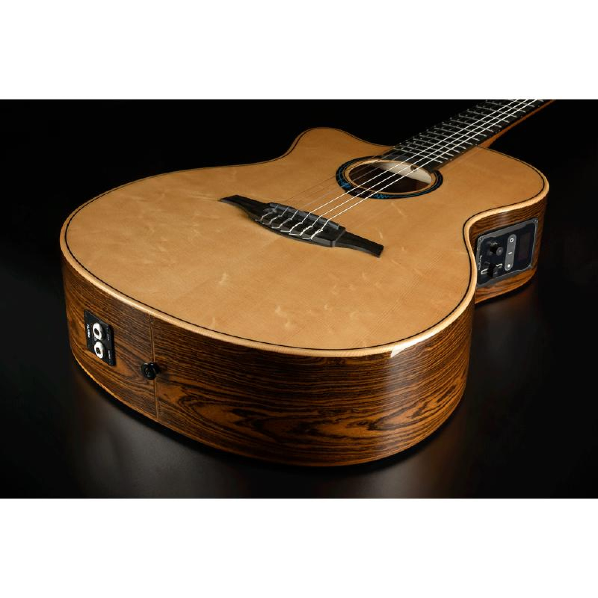 The body is made of high-quality materials, which guarantees the reliability and durability of the guitar. The top is made of spruce, and the bottom and sides are made of Bokote wood. The shape of the auditorium body provides a deep sound, and the left-handed cutaway allows left-handed players to play the upper frets with comfort. The neck is made of Khaya wood and has a double-action anchor, which allows pain to precisely tune the guitar. The width of the upper and lower thresholds is 43 mm and 72 mm, respectively. They are made of graphite. The open nickel-plated tuning pegs ensure a stable tuning, and the pad made of Black BrankoWood (an artificial form of black wood) will give you a comfortable feeling during the game. The strings in the package are nylon (Savarez 510 MRJ mixed tension), and they are characterized by a warm sound.