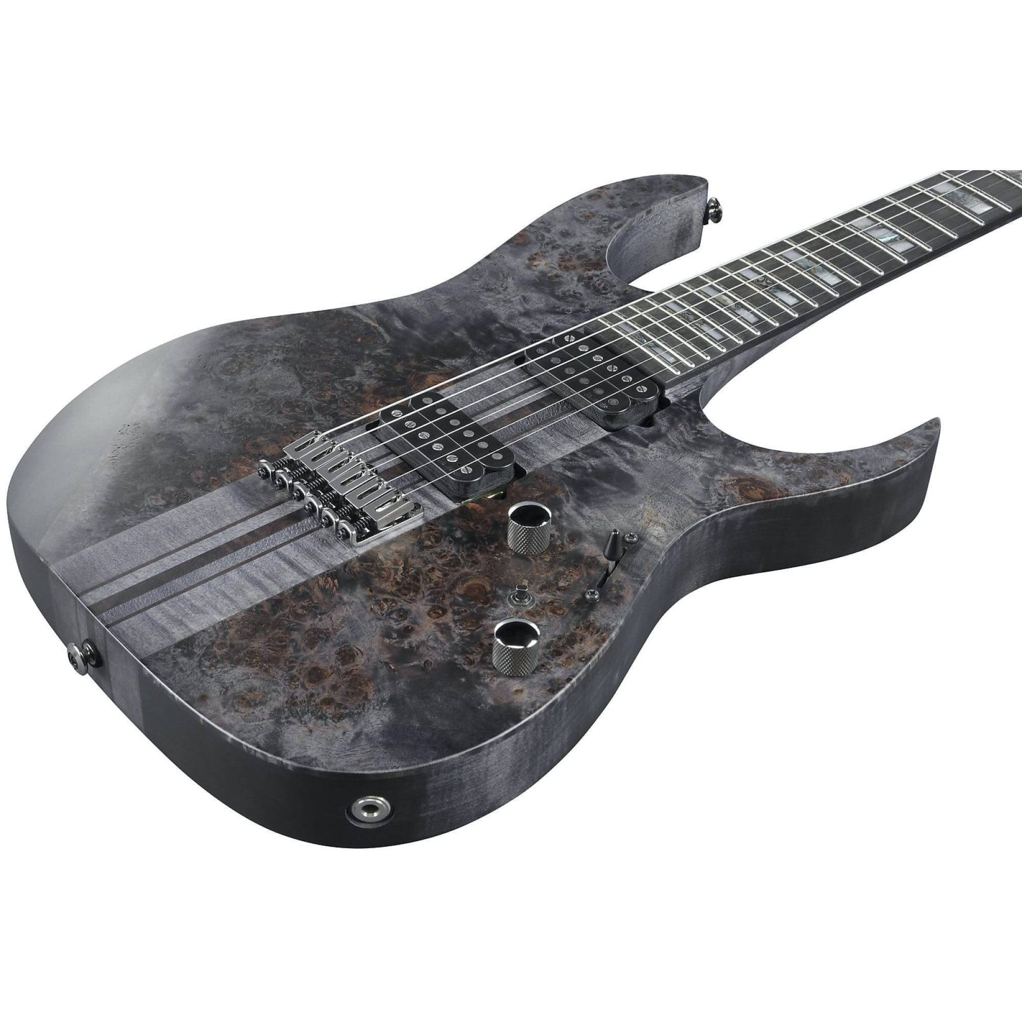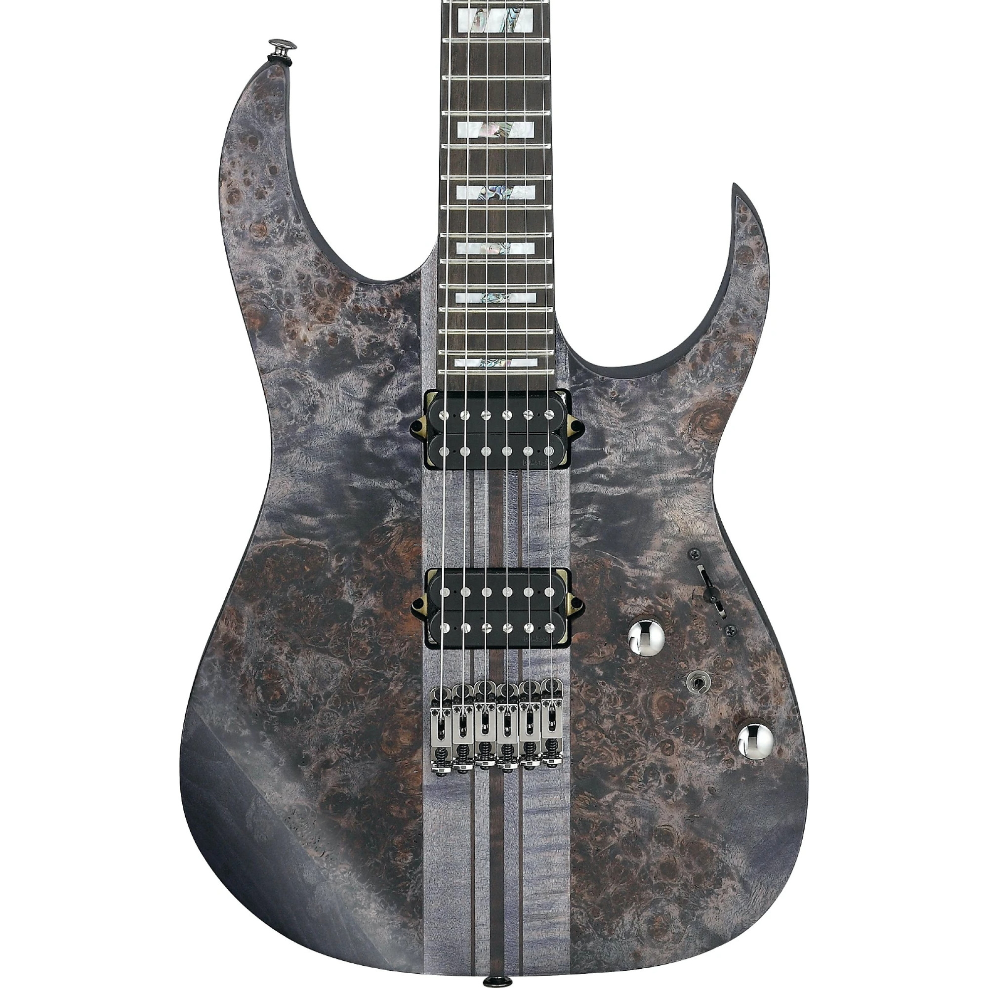 The Ibanez RGT1221PB-DTF is an RG series solid body electric guitar introduced by Ibanez in 2022. It is produced in Indonesia as part of the Premium line. The RGT1221PB-DTF Deep Twilight Flat is the ideal all-around rock and metal guitar with great playability and versatile sound. With a thoughtful neck-through design and proven RG construction, the RGT1221PB offers powerful sound and great playability. The American Basswood body with poplar top provides a balanced tone, while the superb ebony fretboard exudes lively projection and long sustain. In addition to the Wizard III flat-profile maple walnut neck, the guitar is equipped with powerful DiMarzio pickups that provide both crystal clear sound and rich overdrive and distortion tones in the guitar amp. In the neck position, the DiMarzio Air Norton humbucker delivers a deep and warm tone with perfect transparency for smooth, clean sound and melodious overdrive. In the bridge position, the DiMarzio The Tone Zone humbucker delivers rich distortion sound that can be shaped to suit your playing style with dynamic response. In addition to the usual 5-way switch, the Alter switch between the Volume and Tone controls can be used to access additional tone colors. The RGT1221PB is equipped with a fixed Mono-rail bridge that gives you the confidence of tuning stability. The RGT1220PB is a similar model with a double locking tremolo bridge and gold hardware.