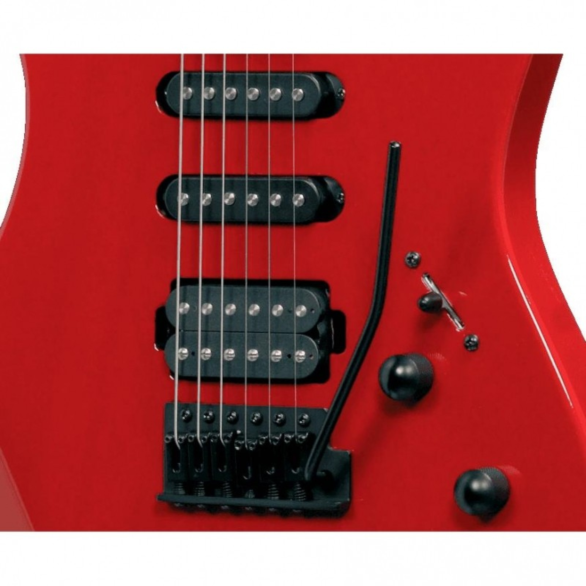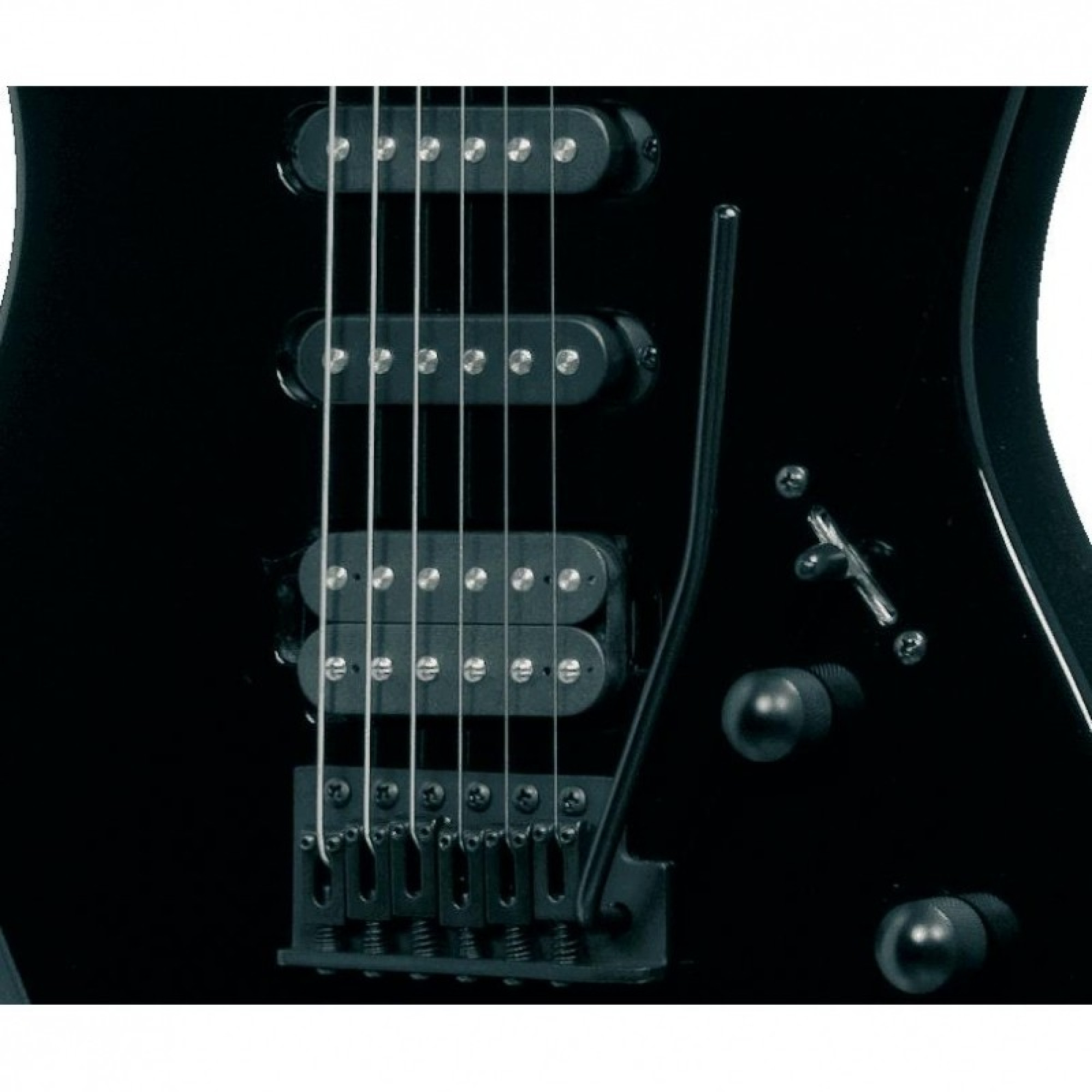 The guitar is equipped with Die Cast mechanics, black, also with three pickups: 1 humbucker at tremolo bridge and 2 singles. Thanks to this configuration of pickups, the guitar has a 5-position switch, and controls the overall tone and volume.