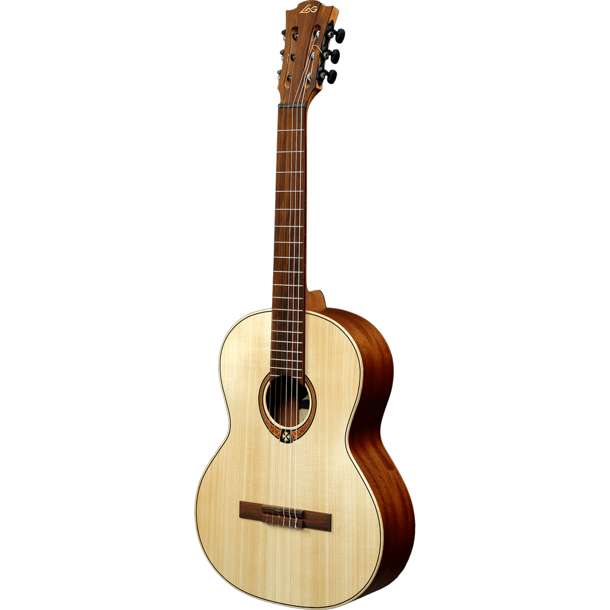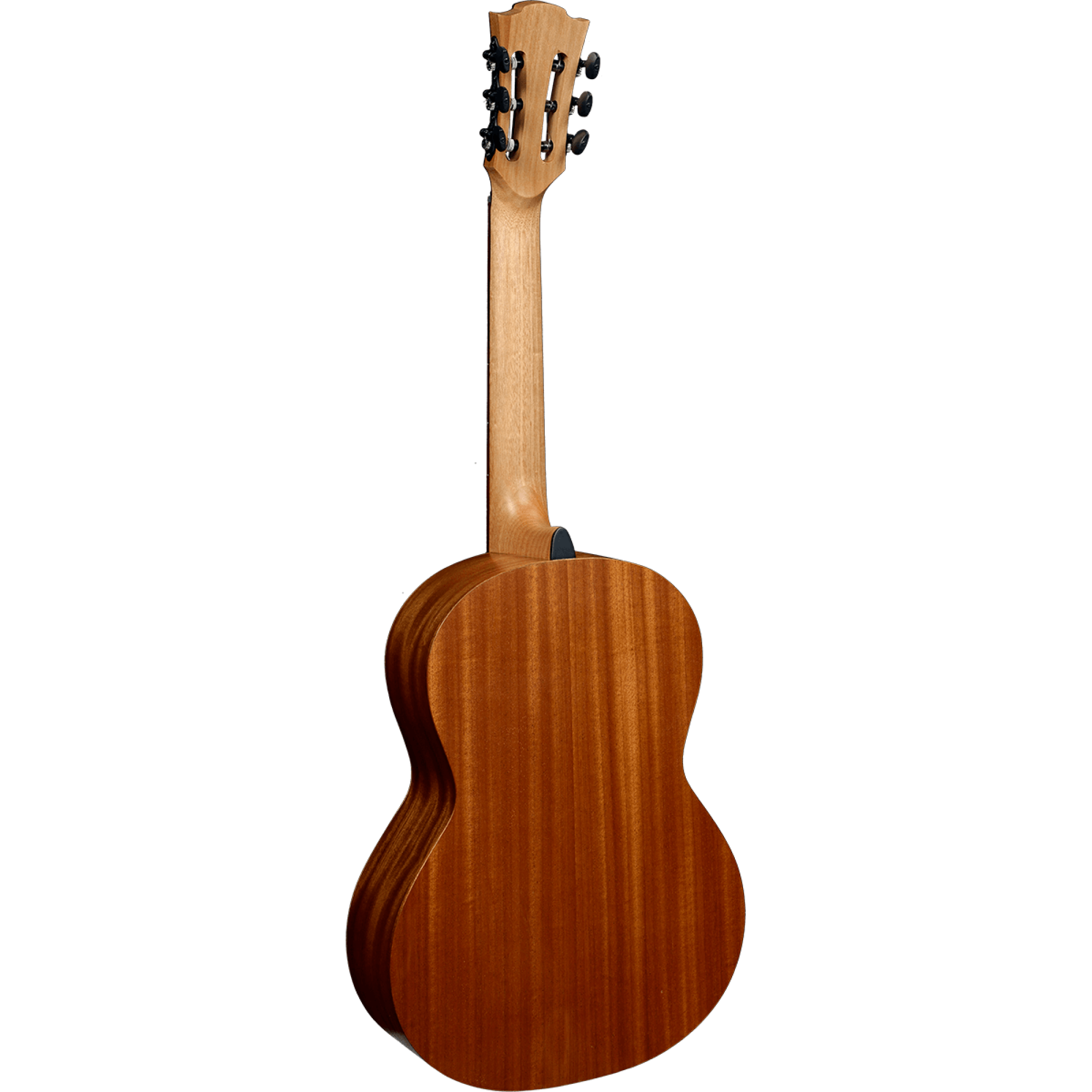 The Lag Occitania OCL70 is a left-handed classical guitar with a solid Engelman spruce top, African sapele back and sides and will be the perfect companion for both musicians and professional guitarists. Scale length is 650 mm. The nuts are made of graphite.