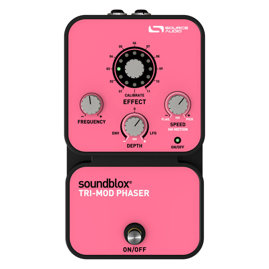 The Tri-Mod Phaser is an evolutionary outgrowth of the original Hot Hand Phaser / Flanger system in a compact and accessible format. There are 11 phaser effect variations that can all be further modified using either a Hot Hand motion controller, LFO (Low Frequency Oscillator) or Envelope Follower.