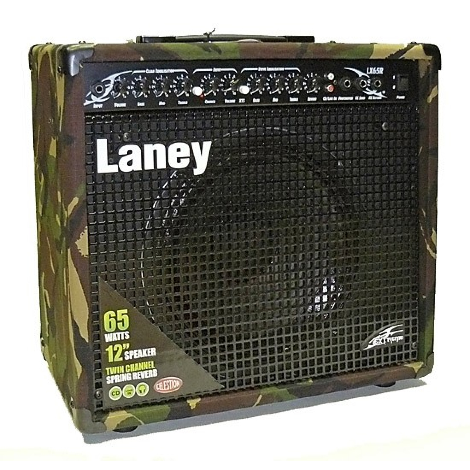 The Laney LX65R combo amplifier has a 3-band equalizer for each with two channels. Also, the combo has a CD-input, headphone output and one 12-inch Celestion speaker. The power of 65 watts is enough for a live performance, and when you connect a speaker like the LX412A you can create a really loud sound.