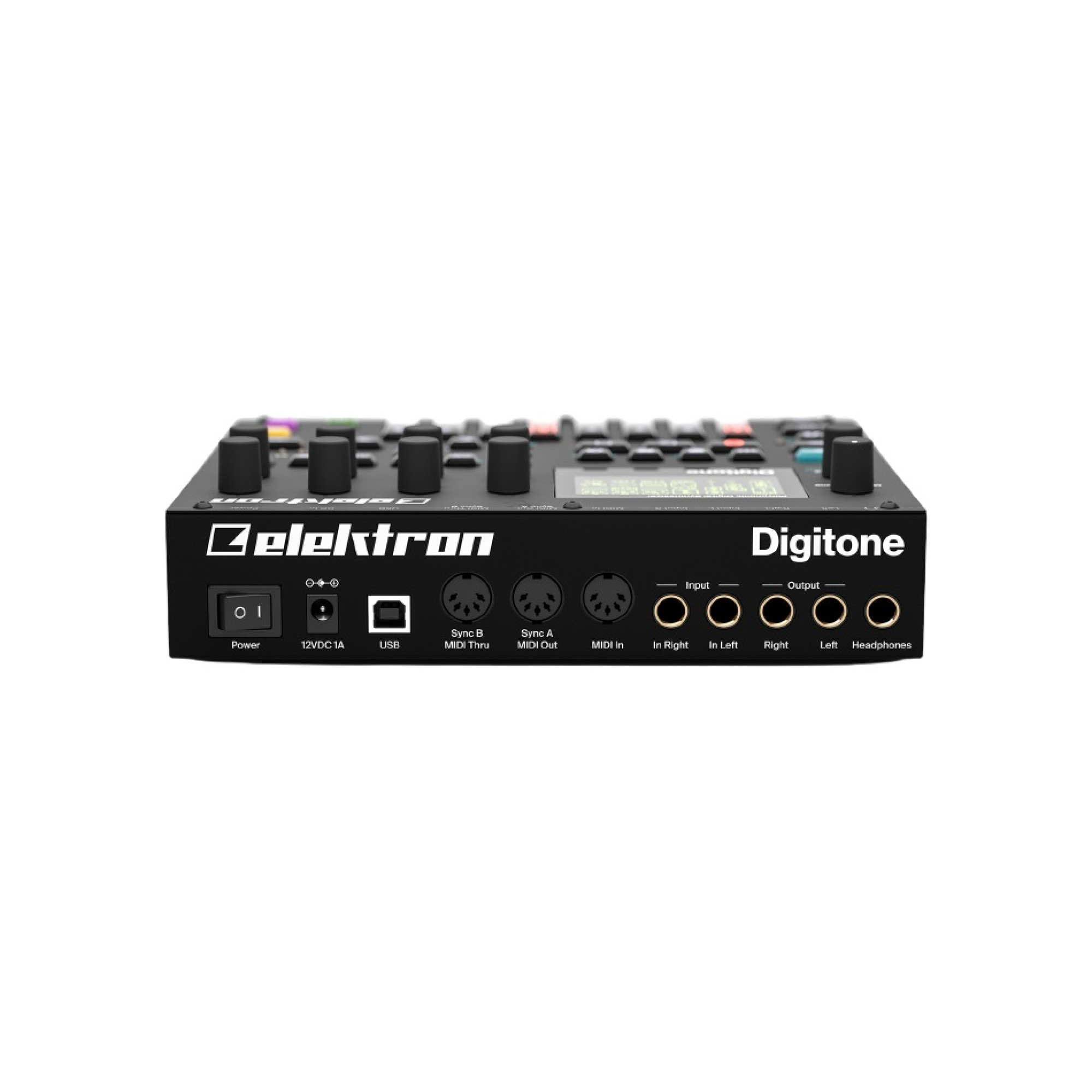 The Digitone is equipped with a full set of I/O: two audio inputs, two outputs, a headphone output, USB 2.0, as well as MIDI input, output, and a pass-through channel. A power supply and a USB cable are included, making the device completely ready to use out of the box.