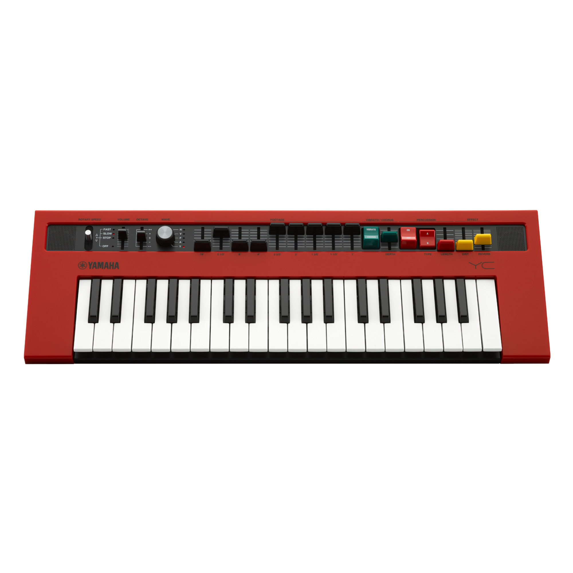 The Yamaha Reface YC mobile mini keyboard provides you with authentic, great-sounding organ sounds that you can carry under your arm. You get five different organ models ranging from vintage tonewheel to transistor to classic YC combos, as well as a full assortment of drawbars, rotary speaker, percussion, and effects to add depth and expressiveness to your performance. The Reface YC makes it simple: pick an organ model, tweak the drawbars, add reverb and distortion, plug in an optional expression pedal, and enjoy a realistic, totally awesome organ experience. The keyboardists here at Sweetwater have been looking for a portable alternative to their "clonewheel" organs, so we're really excited about the Yamaha Reface YC mobile mini keyboard!