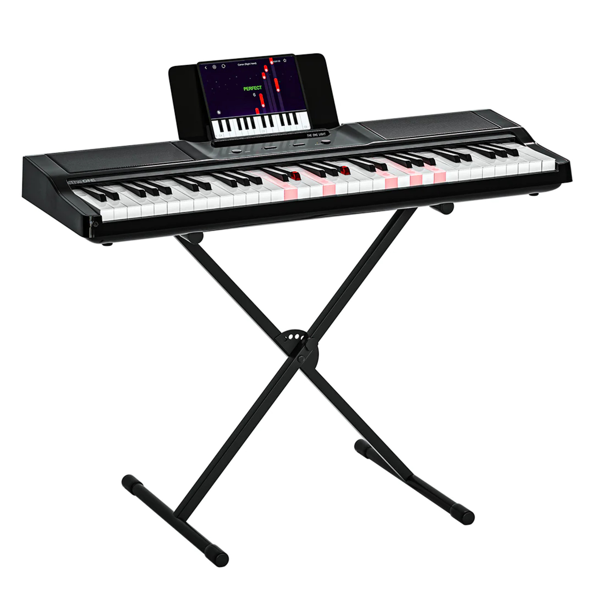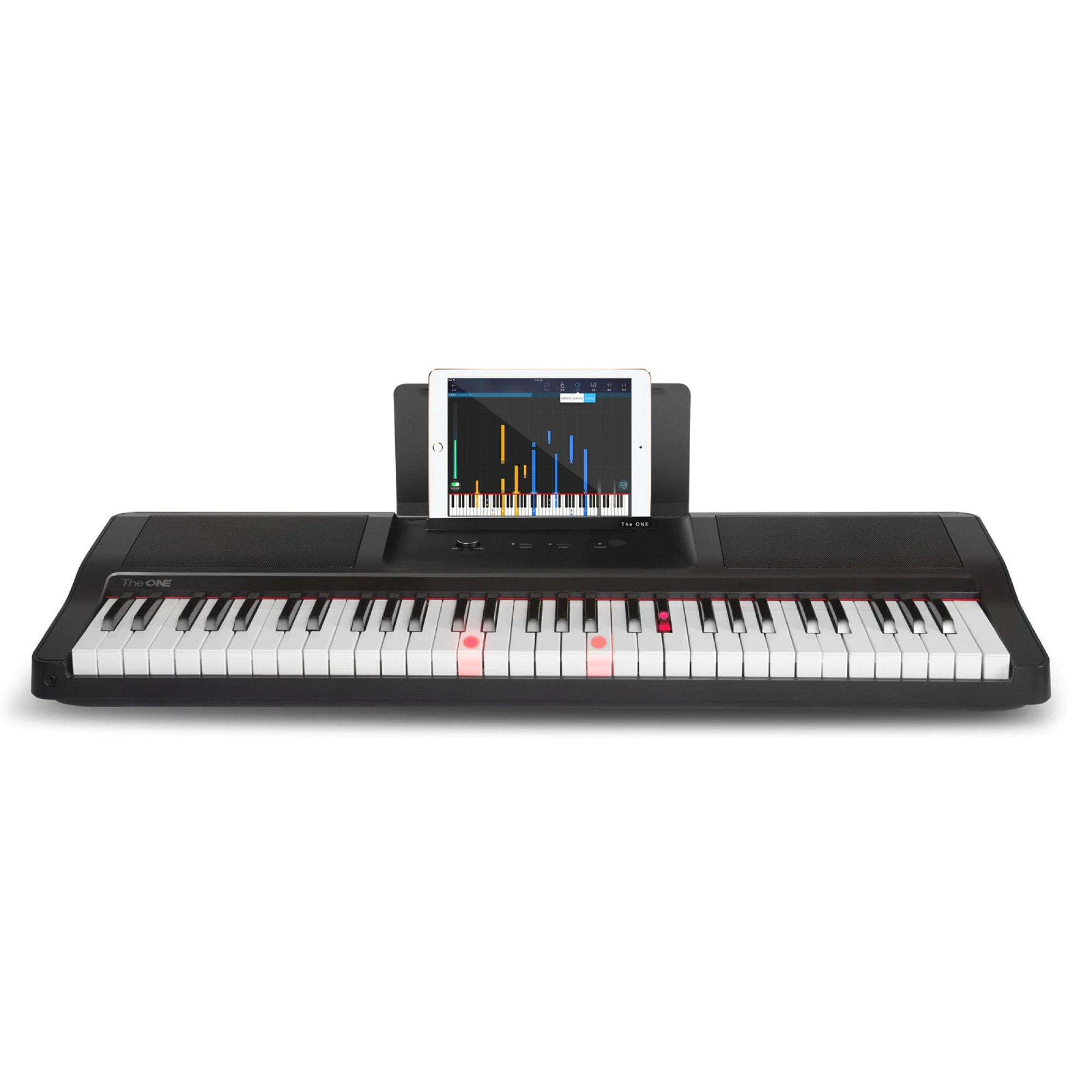 Create your own band with 417 sounds, 128-note polyphony, and best of all, 61 full-size keys with touch response, allowing you to play more compelling and dynamic parts. With built-in LED lights, 4,000+ notes, 100 instructional videos and fun games in the free app, this digital piano will have you playing in minutes. The ONE TOK1 is not just a piano, but also a piano teacher.