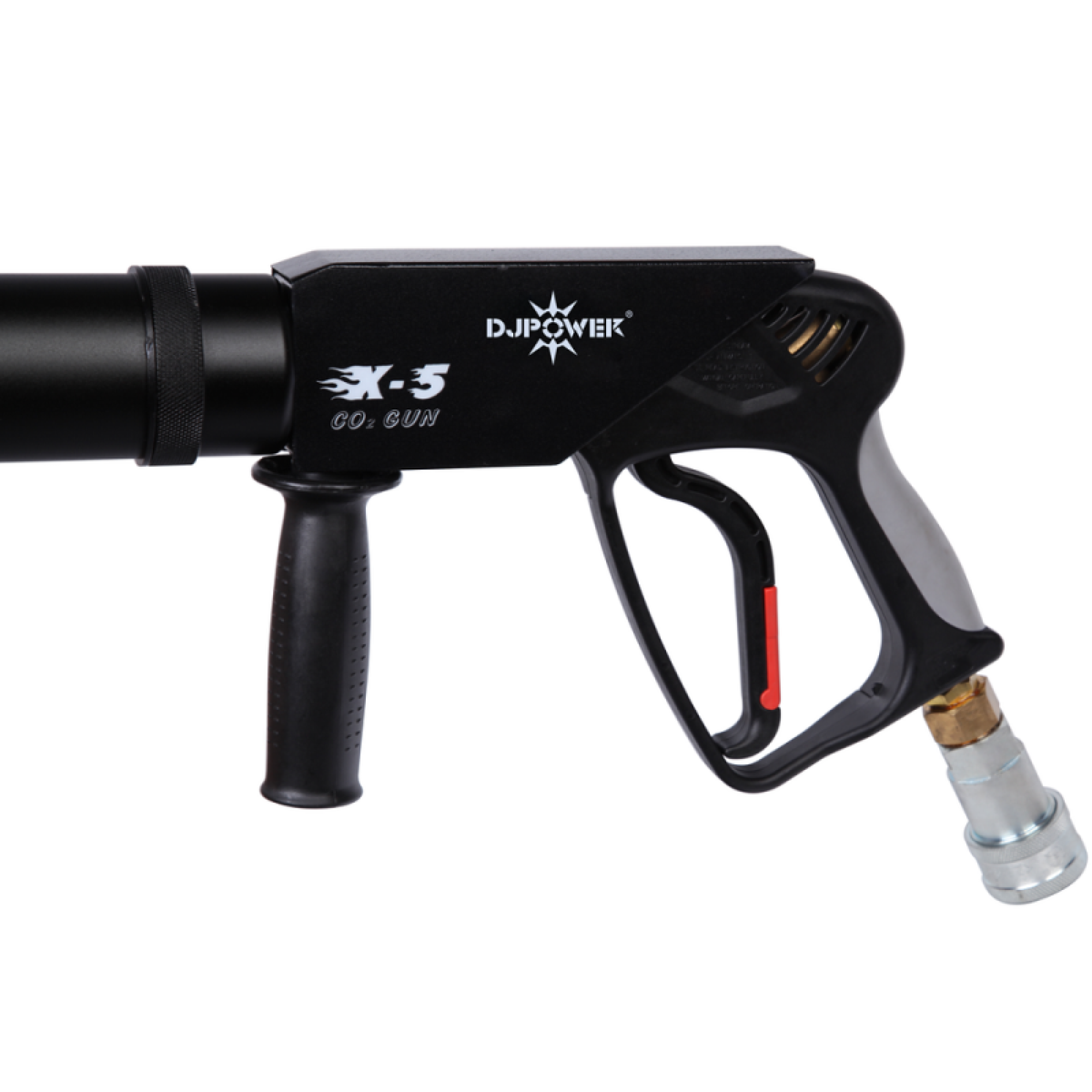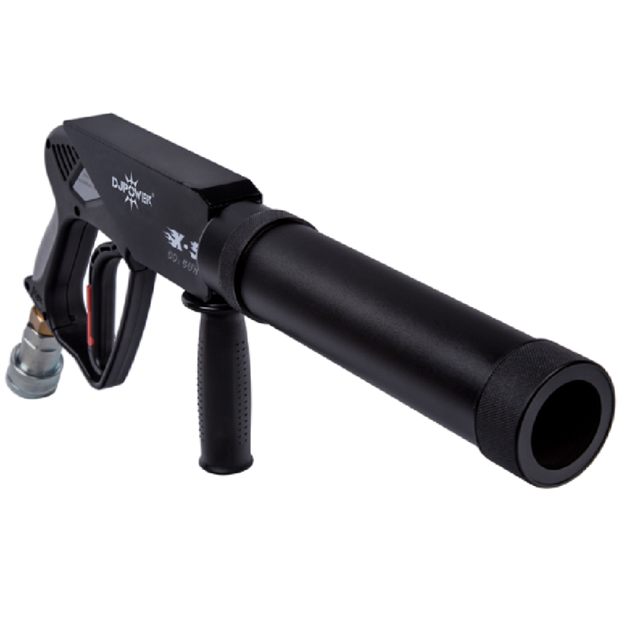 Handheld CO2 Gun produces thick white atmospheric column via high pressure liquid carbon dioxide.