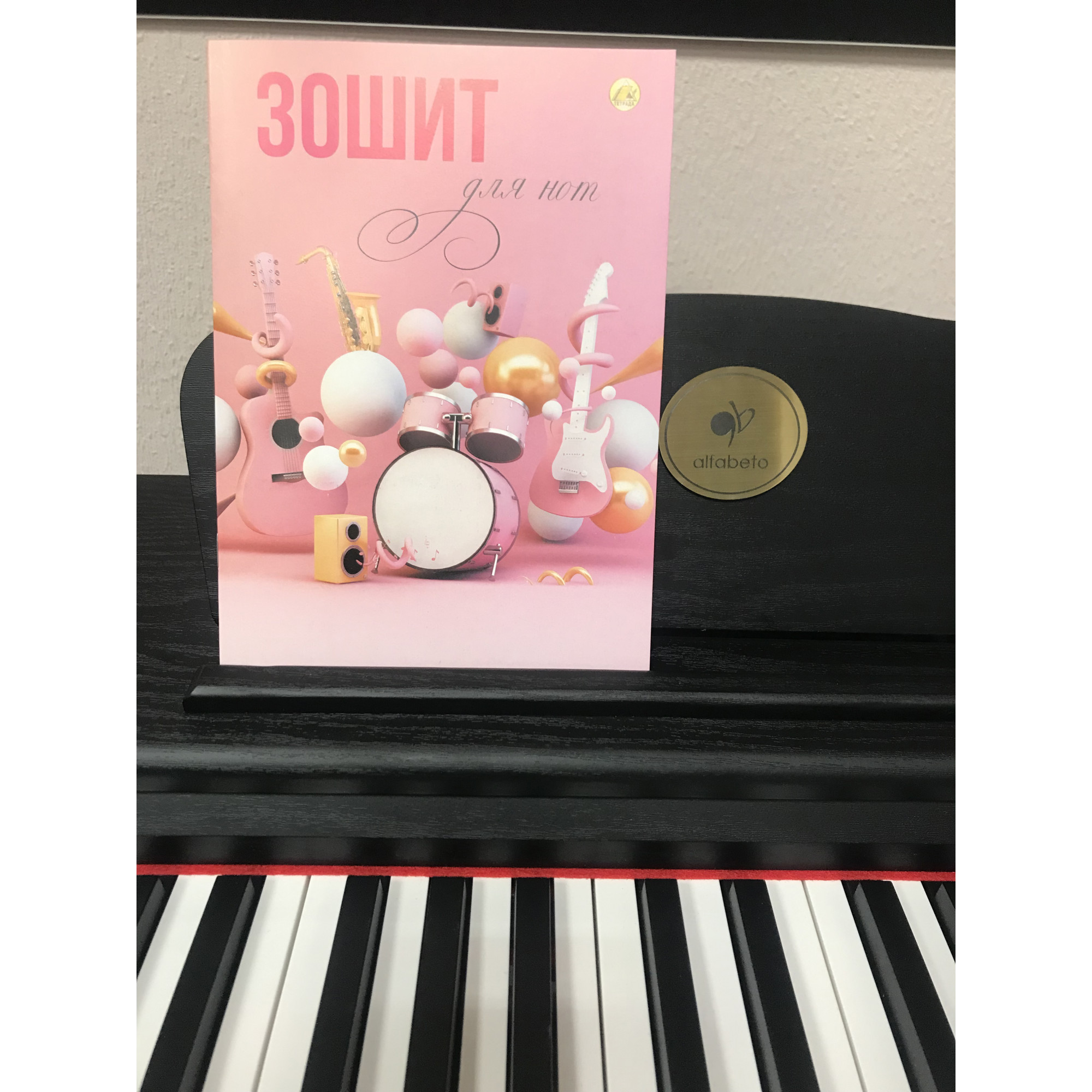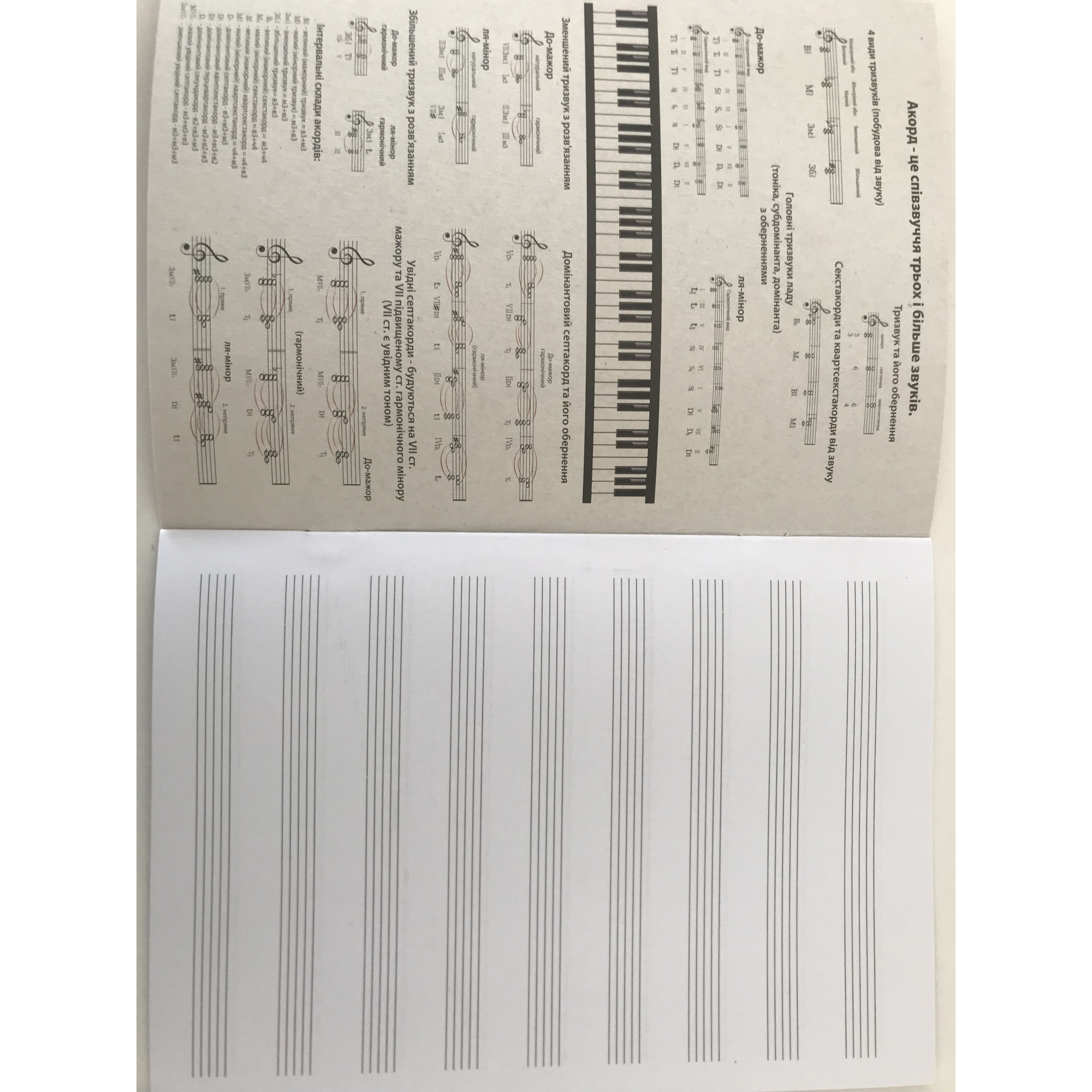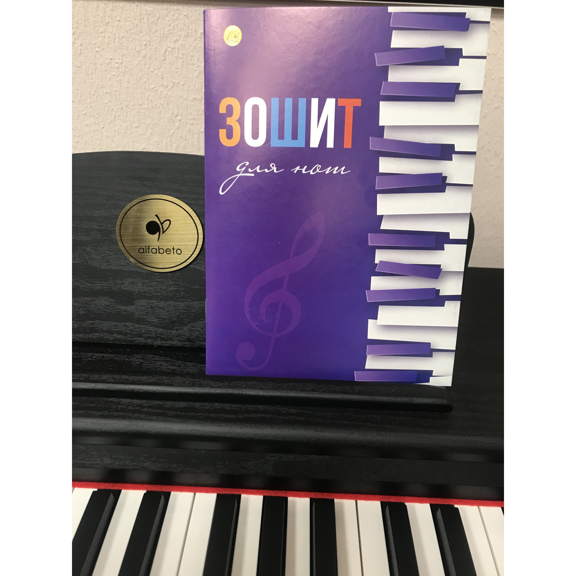 The notebook for music in a convenient A5 format consists of 12 sheets with a special ruler in the form of musical notes. Colored cardboard binding. On the inside cover and on the outside back — reference Information. All rules for solfeggio and musical literacy for all years of study at a music school on three pages!