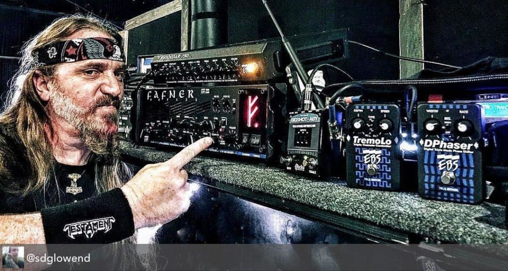 Steve Di Giorgio: “Nordic lowend in North America. This tour is powered by EBS amplifiers, speakers & effects. Fafner 2, Reidmar 750, NeoLine 8×10, TremoLo, DPhaser. These are the components of the thunder you feel at any of the #testament #sepultura #prong shows.”
