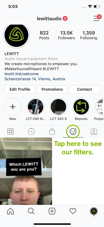 How to use the LEWITT Instagram filter "Which mic are you?"