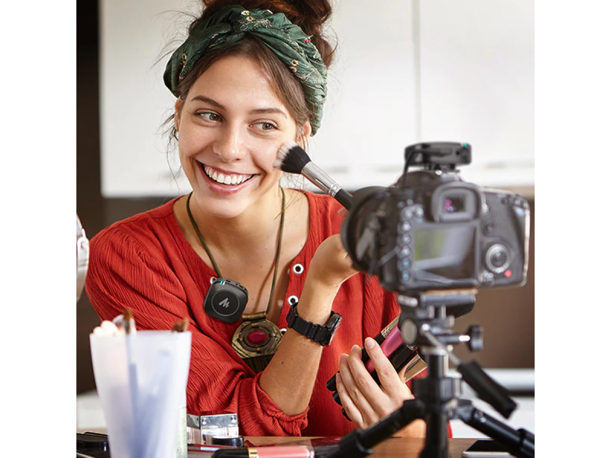This is an ultra-compact and extremely versatile wireless microphone system consisting of a receiver and transmitters. Universal compatibility with cameras, mobile devices and computers, extended range (50 m line of sight), and improved transmission stability.
