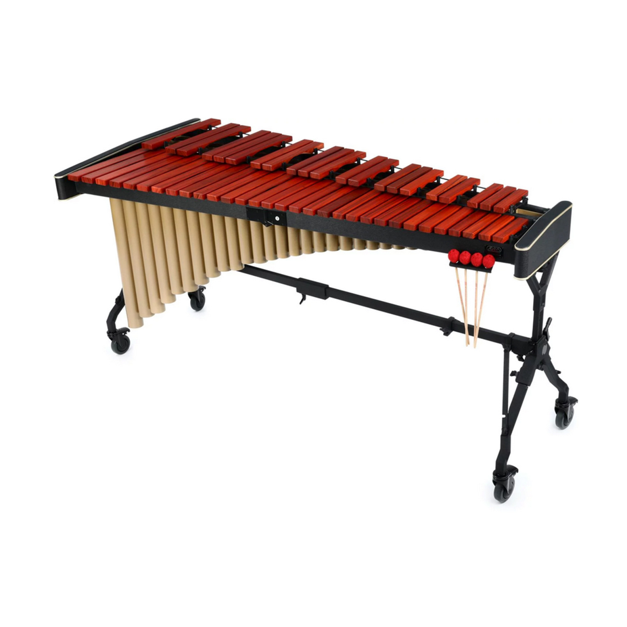 Honduran rosewood is characterized by an unparalleled resonant quality, giving the marimba a full and clear sound. Padauk, with its almost identical characteristics, offers a slightly shorter resonance time, but remains very affordable. Zelon, a synthetic material designed specifically for outdoor use, provides a bright tone and long-lasting sound projection, making it ideal for large-scale performances.