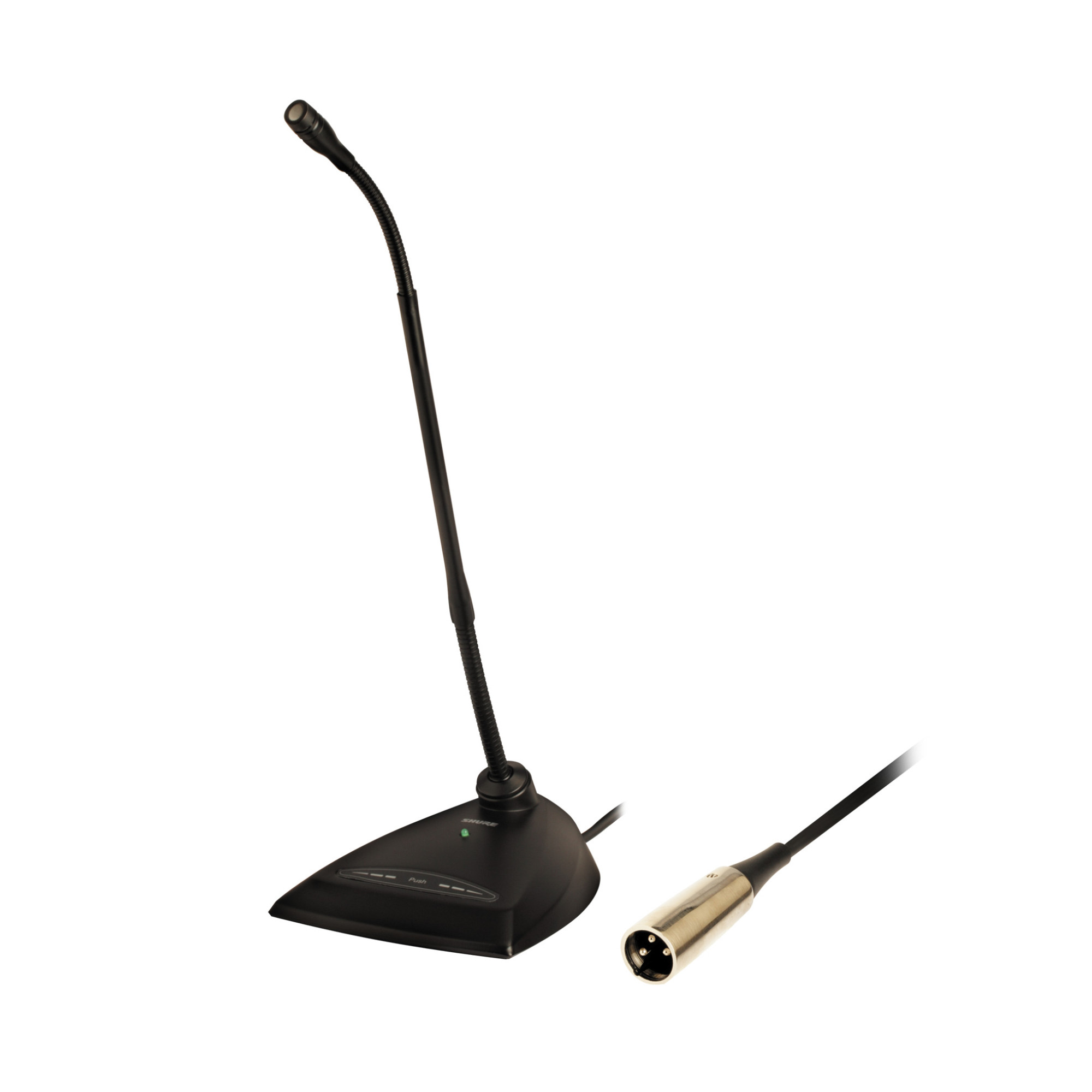 The Microflex MX412D/S super-cardioid gooseneck conference microphone brings a whole new meaning to the word "flexible". The desktop stand of this microphone allows you to place it anywhere. This microphone is an excellent choice for courtrooms, houses of worship and convention centers. The desktop base has a programmable on/off switch with LED indicator for easy operation. Easy-to-change cartridges provide wide frequency response and accurate sound reproduction for a wide range of applications (cardioid – C, super-cardioid – S and omnidirectional cartridge – O). The Shure MX412D/S features high sensitivity and a balanced, transformerless output for maximum EMI/RFI immunity, even over long cable runs.