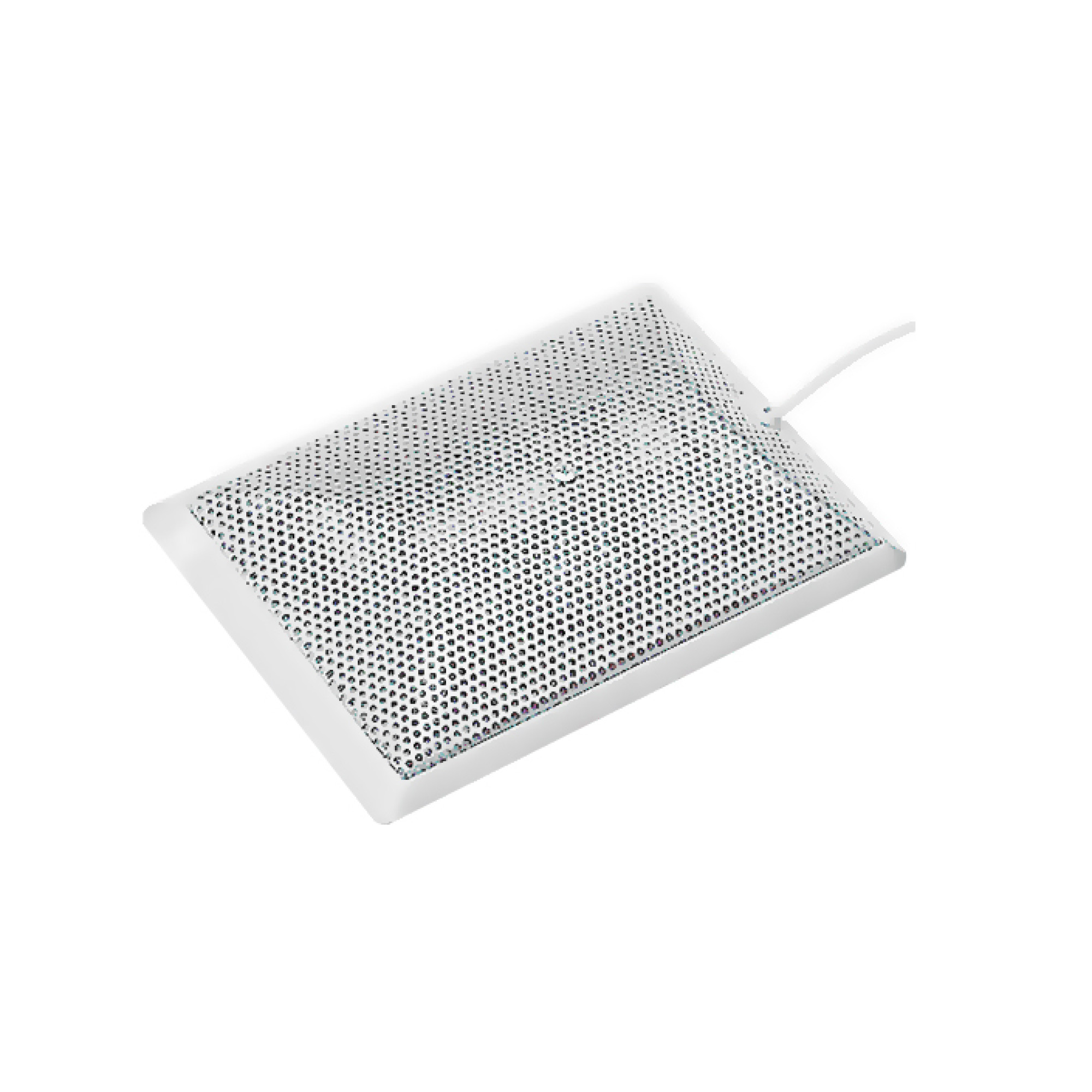 The Electro-Voice RE90BW is part of the RE Series of architectural microphones and is highly immune to radio frequency interference (RFI/GSM) thanks to EV's exclusive RF Shield technology. The RE90BW is a full-range condenser microphone designed for use in surface-mounted systems such as distance learning centers, video conferencing, teleconferencing and sound reinforcement systems. The polar pattern of the microphone is semi-cardioid, which contributes to good gain before feedback and suppression of ambient noise. All boundary type microphones operating on a flat surface are characterized by an increase in microphone sensitivity with increasing frequency, which is called the baffle effect. To combat this effect, the RE90BW microphone features internal equalization to provide a flat response response. The RE90BW microphone is designed to be powered by an external 9-52 VDC phantom power supply. The RE90BW microphone is housed in a heavy-duty die-cast zinc housing, protected by a durable perforated steel shield. The microphone body is designed to perform two distinctive functions. First, when mounted permanently, the housing is electronically isolated from the surface on which it is mounted, thanks to a rubber friction pad and internal fiber washers. Second, the miniature microphone cable can be routed directly from the back of the microphone, or the cable can be routed from the bottom of the microphone through the table top without exposing the microphone cable. The microphone cable connects to the microphone via an internal tamper-proof terminal block. For permanent installation, a drilling template is included in the delivery. The RE90BW is designed as a low profile case. The RE90BW is impact-resistant thanks to a combination of a heavy-duty die-cast housing, a rubber anti-slip bottom pad, and internal microphone and circuit board insulation. This combination of insulation minimizes the mechanical coupling of surface vibrations to the microphone. The RE90BW is supplied with a miniature shielded two-wire cable, 3 m (10 ft) long, with an XLR connector.