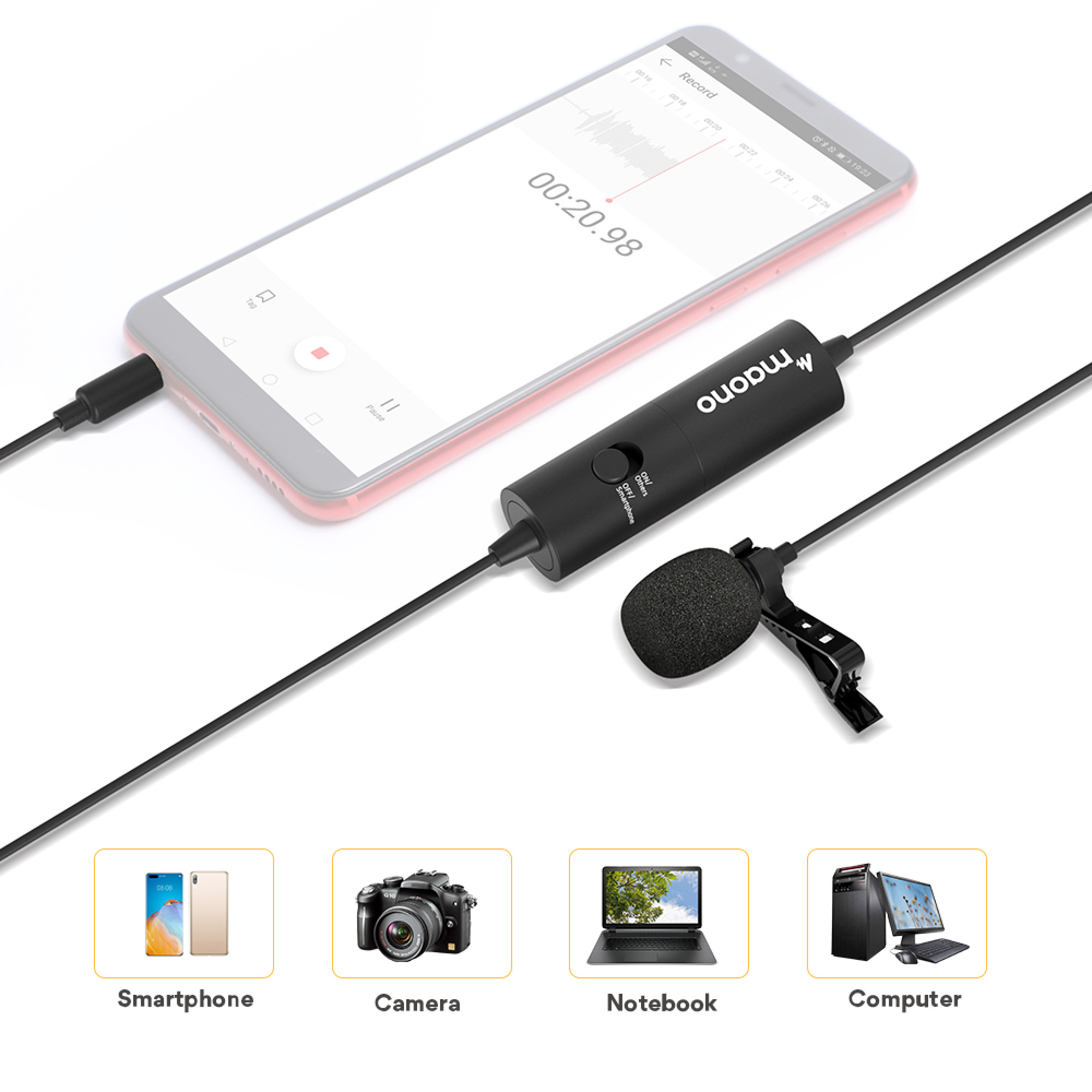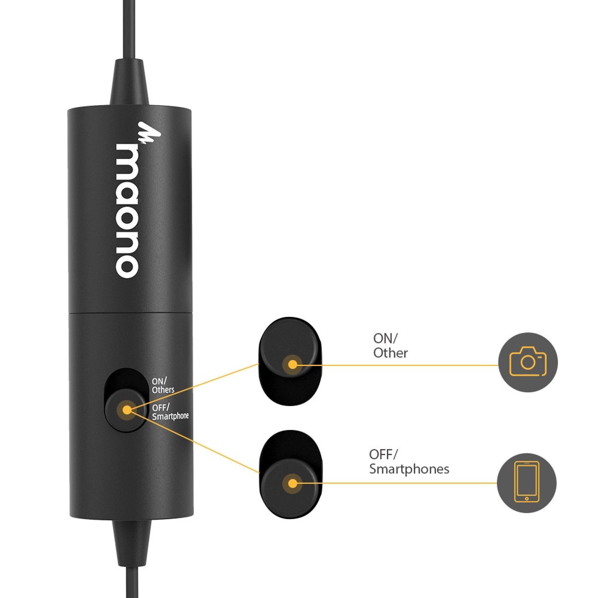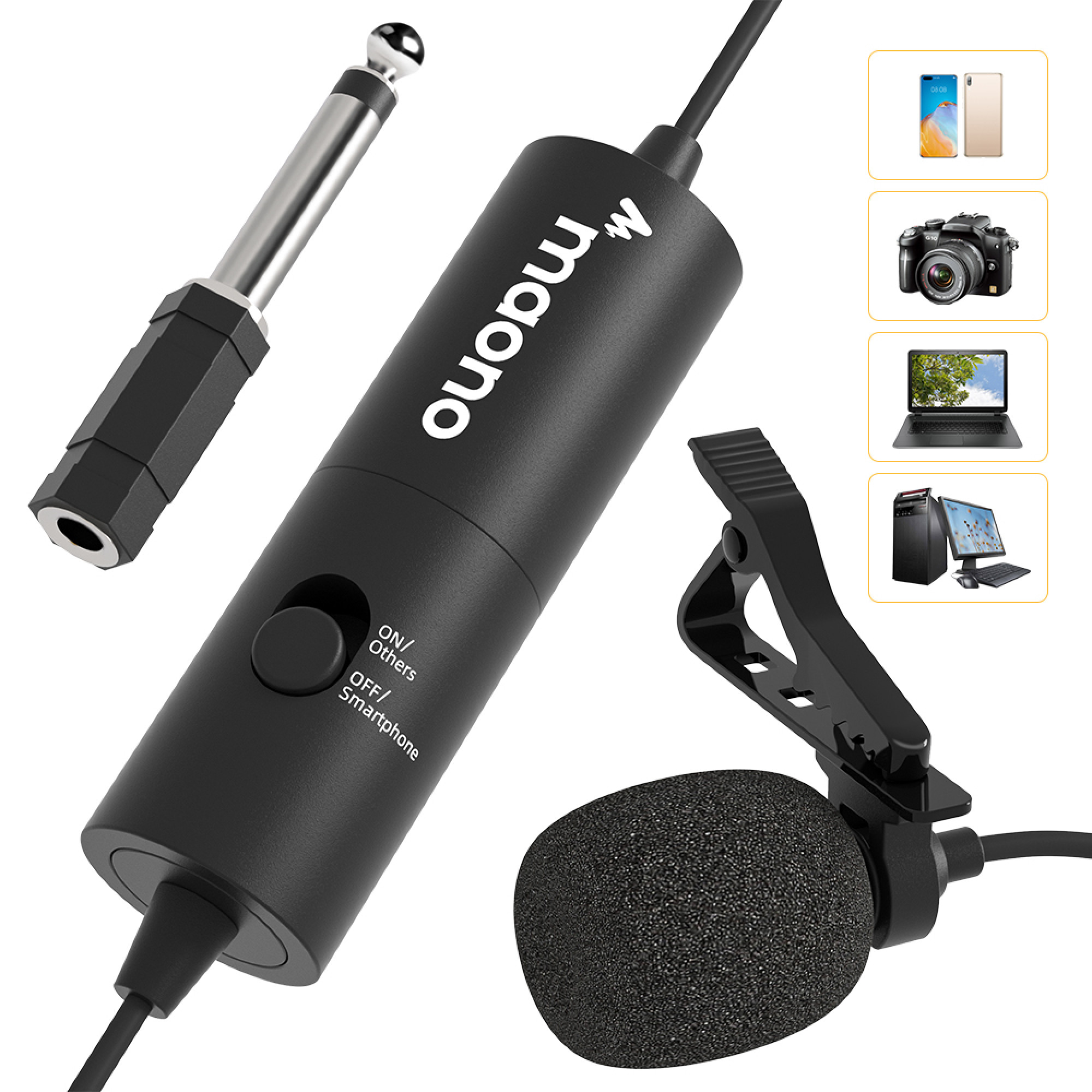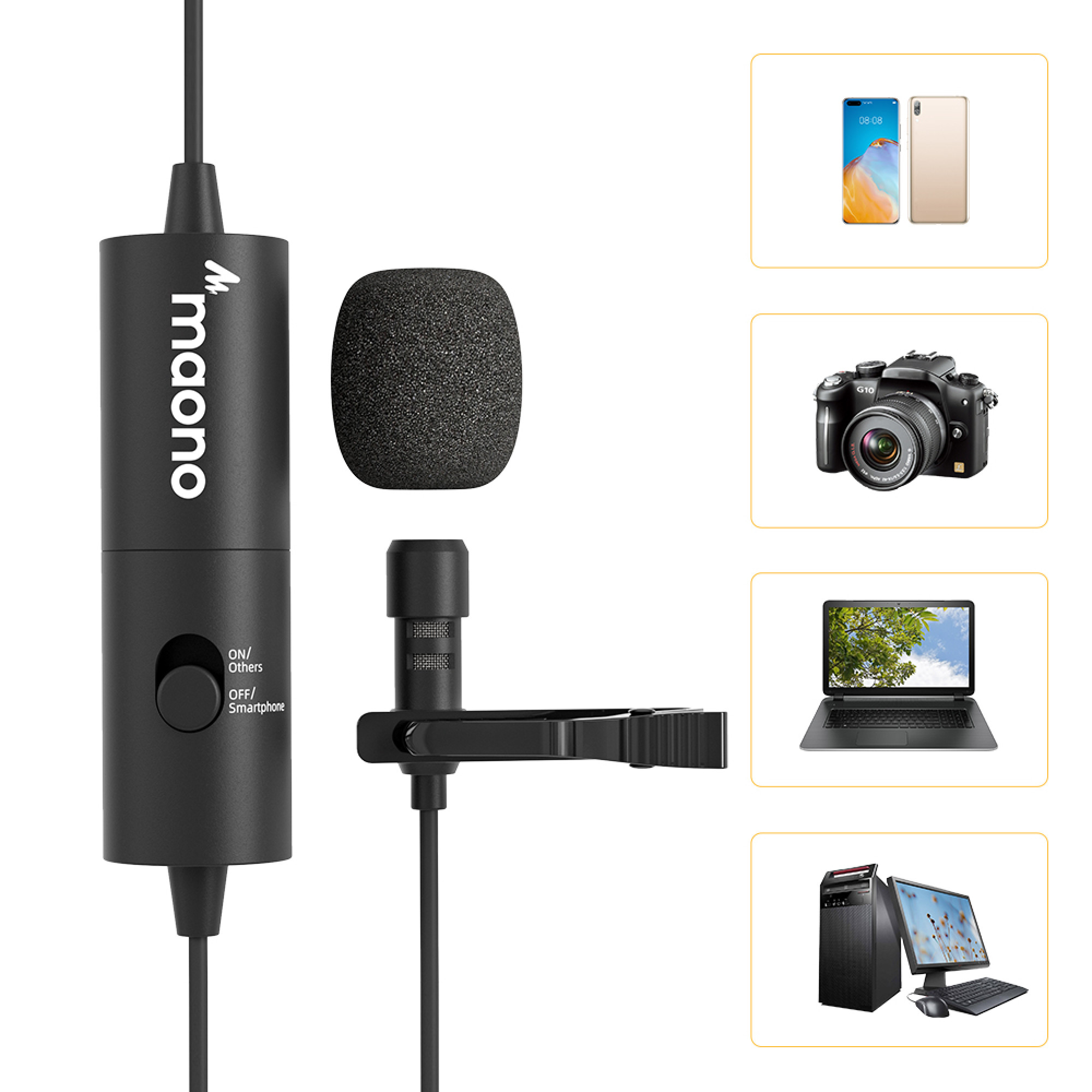 The Maono AU100 lavalier microphone is a universal lavalier microphone, which compatible with smartphones, PC, cameras, Mixer, DSLR and other recording devices, etc. Low handling noise, High-quality condenser is ideal for video use. Built-in rechargeable battery to make it available for over 90 hours working time, charging cable is included. LED Indicator of Battery Capacity, avoid embarrassment without electricity. “OFF" is for smartphone mode, “ON" is for DSLR camera mode, 3.5 mm to 6.35 mm adapter is included too to meet your more needs.