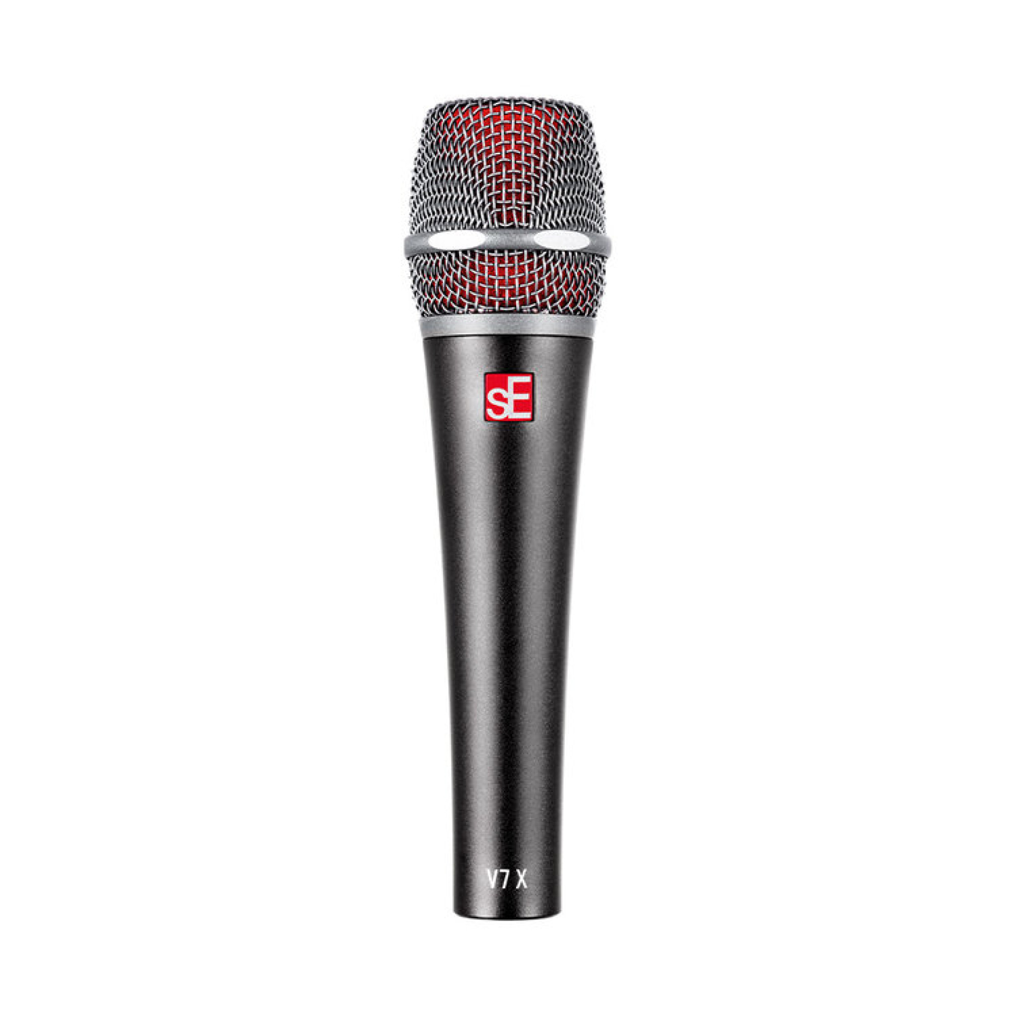 The sibling to sE's acclaimed V7 dynamic vocal microphone, the V7 X is a dynamic instrument microphone ideal for a wide range of applications – both in the studio and on the stage. Thanks to its well-balanced, neutral sound, it allows the capture of nearly any source from electric guitar cabinets to brass instruments, snare drums to choir, and more. With its innovative, specialized aluminum voice coil, the V7 X delivers a crisp, open sound that perfectly captures your instrument in the most natural way you've ever heard on stage – and makes your sound engineer’s job easier than ever. The supercardioid pattern of its sophisticated capsule design also helps isolate your instrument from other sound sources on the stage – efficiently reducing stage bleed and ensuring high gain before feedback. The capsule’s unique, patented suspension also helps eliminate handling noise, footfall noise and any rumble. The red internal windscreen efficiently reduces unwanted wind noise – and in case you prefer a more visually subtle black windscreen, we have also included one as a standard accessory. The V7 X’s robust all-metal construction, stainless spring steel mesh grille and gold-plated XLR contacts ensure durability and reliability with no corrosion for many years. Proven Neodymium magnets, tight production tolerances and high workmanship ensure excellent sensitivity, high-end sound quality and superb consistency.