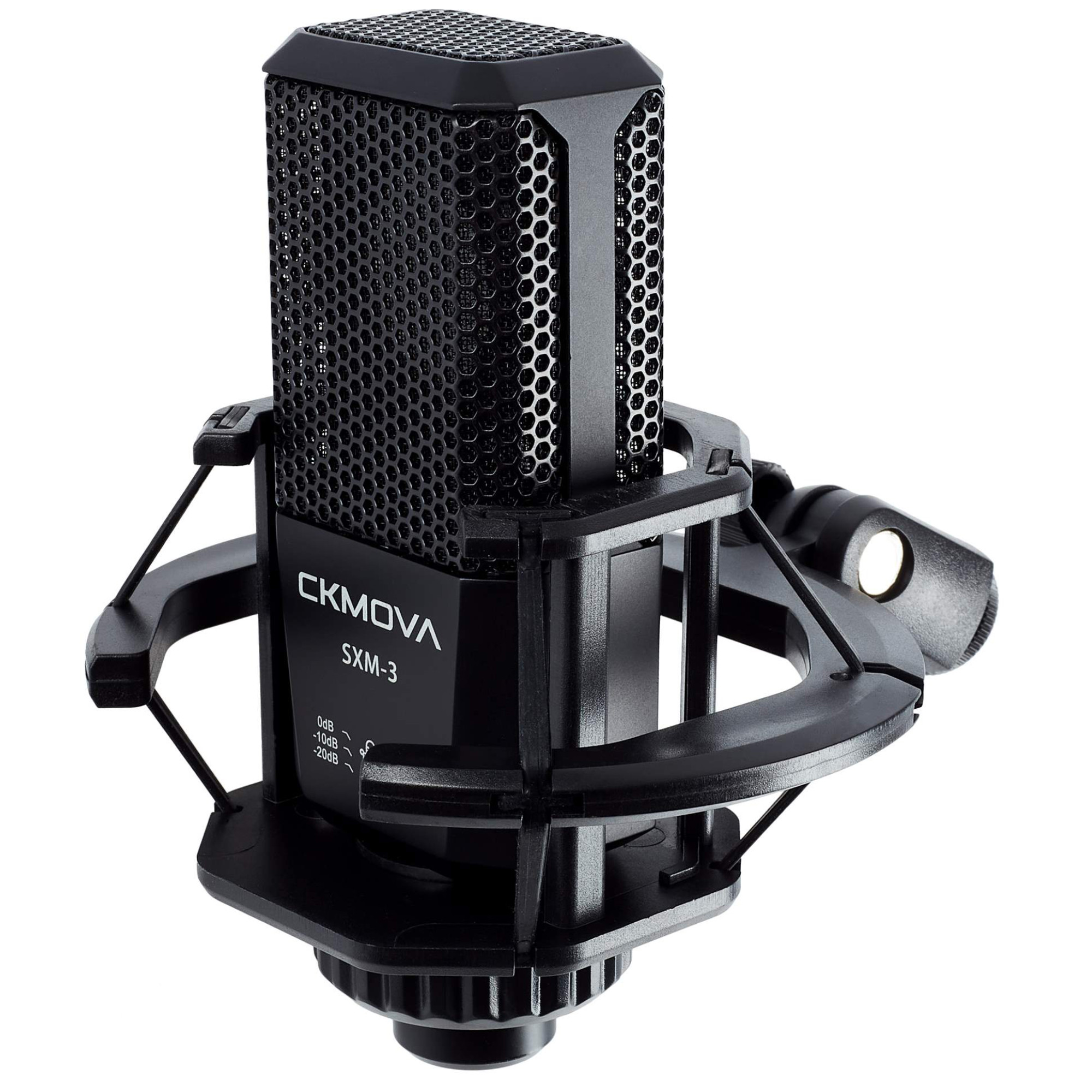 CKMOVA SXM-3 is a large cardioid diaphragm condenser microphone with a smooth, flat, wide-range frequency response, it’s perfect for vocal and general instrument capturing in project and professional studio environments. Cardioid polar pattern reduces pickup of sounds from the sides and rear. The microphone is whole durable metal construction housing design, and work with standard 48V phantom power, which is supplied through the standard 3-pin XLRM connector.