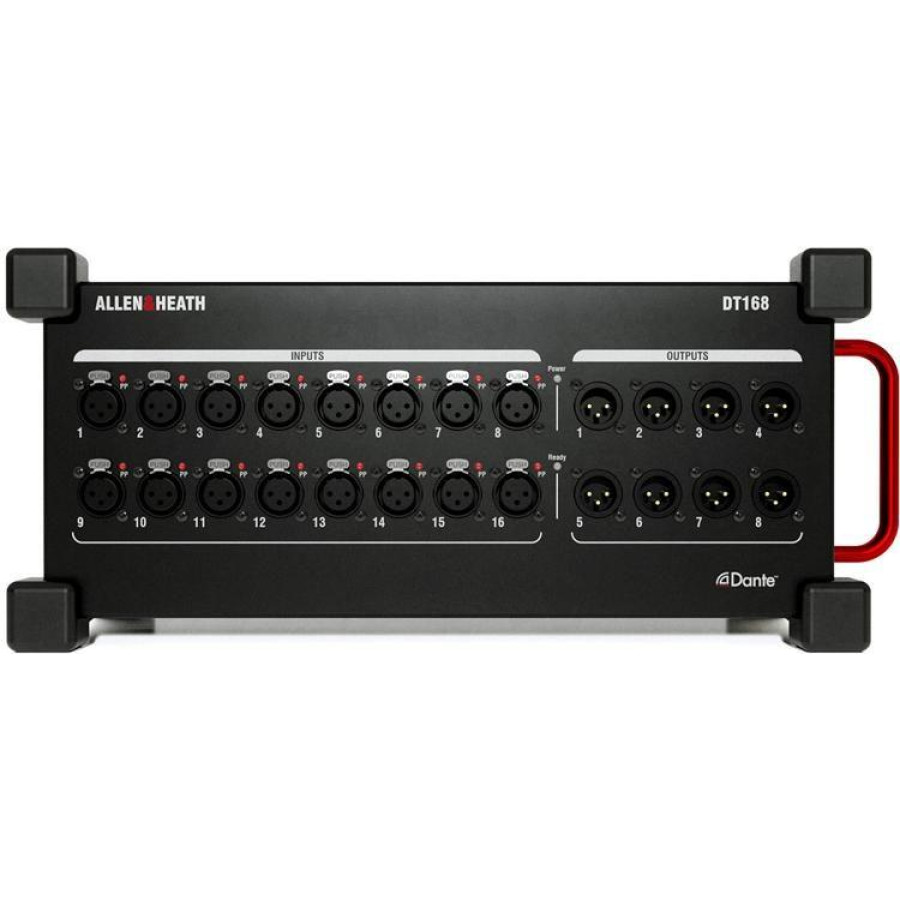 The Allen & Heath DT168 is a reliable portable expander for adding I/O channels to Dante-equipped dLive, Avantis, SQ or AHM systems.