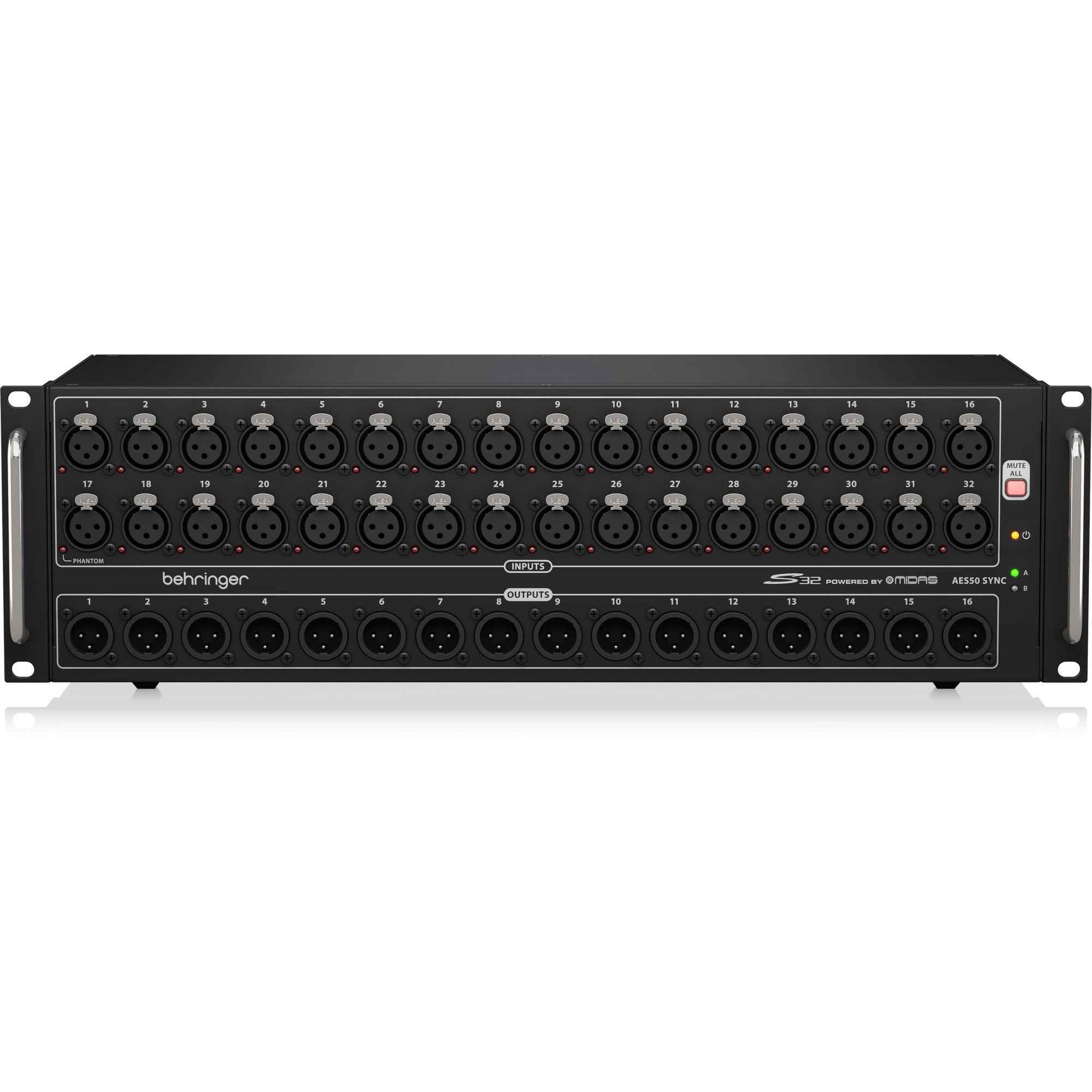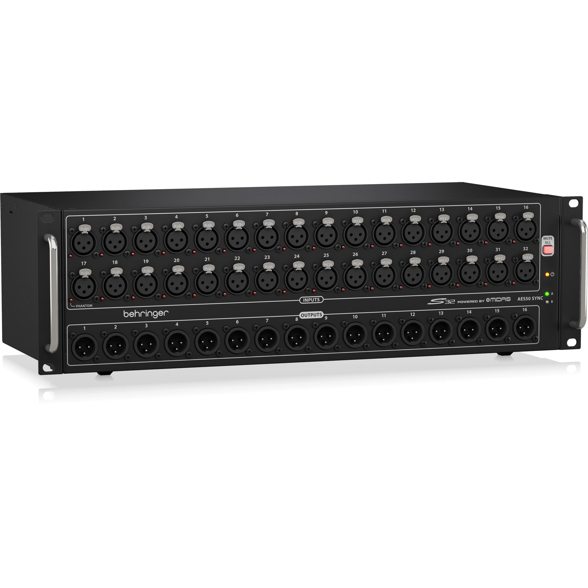 - Automatic AES50 stage-split mode when connected between Behringer X32 Series FOH and monitor consoles