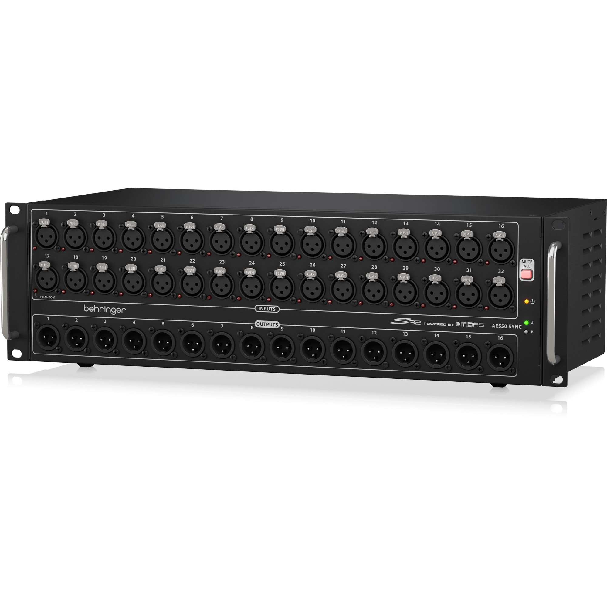 Digital mixing has revolutionized virtually everything in the live-entertainment production workflow. The ultra-affordable S32 digital stage box bridges the gap between the onstage talent, Front of House (FOH) console and the rest of the world with its ultra-fast and rock-solid performance! The S32 provides 32 MIDAS-designed remote-controllable mic preamps, plus 16 balanced analog XLR returns at the stage end – and all it takes is a single Cat 5e cable (up to 328 ft/100 m). While KLARK TEKNIK, the industry-leader in high-end digital audio processing, invented the AES50 SuperMAC technology that made it all possible – our superb scale of production makes the S32 so very affordable.