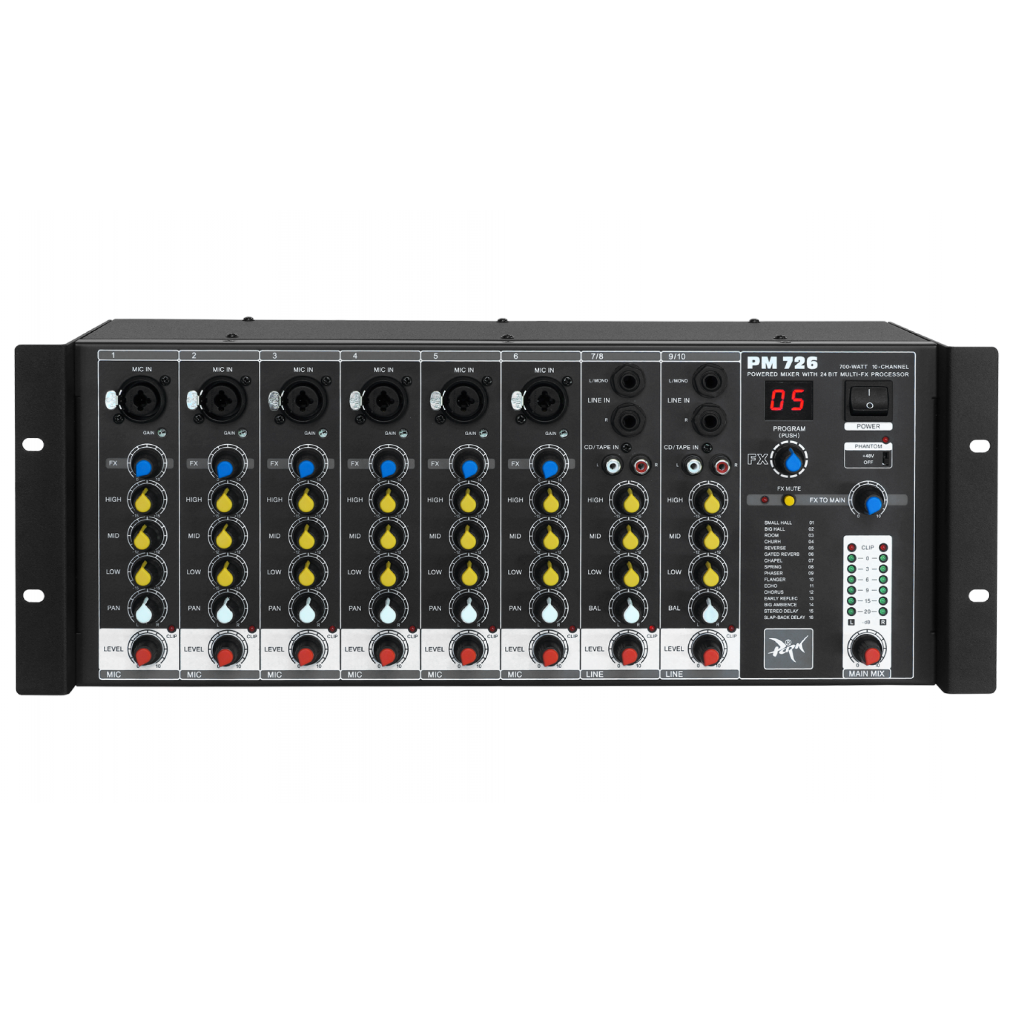 The power amplifier section has overload and short circuit protection to ensure a long service life for your equipment. Overall characteristics such as a wide frequency range, low harmonic distortion, and high signal-to-noise ratio make this mixer an ideal choice for professional recording and performance. Let your music sound the way you've always dreamed with the Park Audio PM726, your trusted partner in creating unrivaled sound.