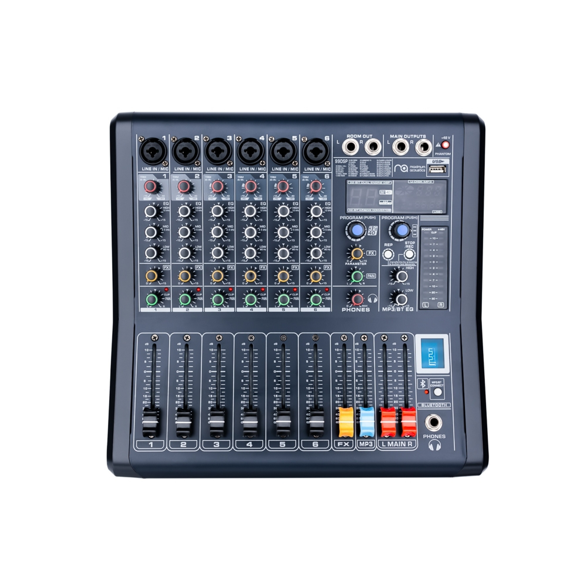 Maximum Acoustics POWERMIX.5006 is equipped with an MP3 player and USB input, as well as Bluetooth technology for audio playback from external devices without using cables.
