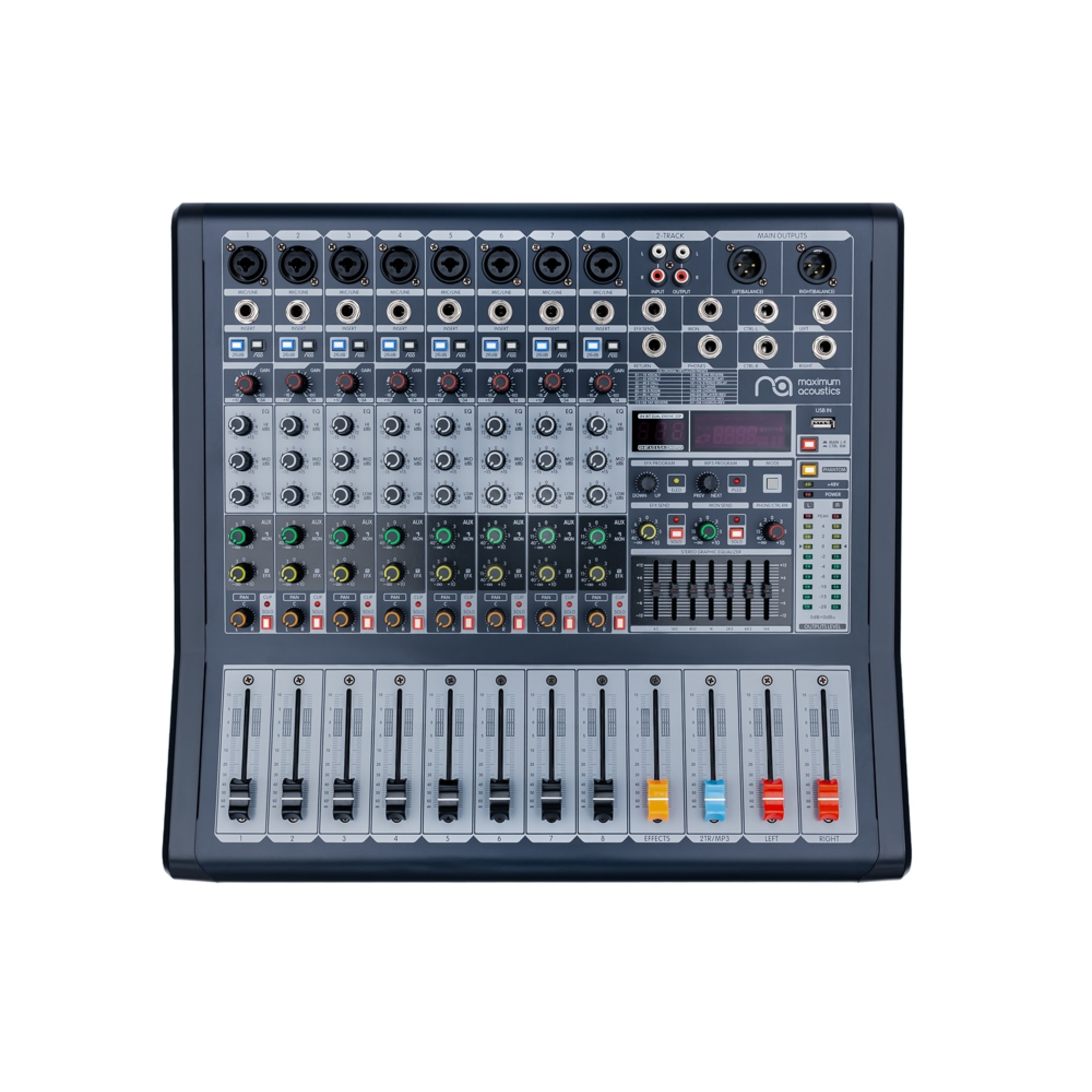 Maximum Acoustics POWERMIX.7008 is equipped with an MP3 player and USB input, as well as Bluetooth technology for audio playback from external devices without using cables.