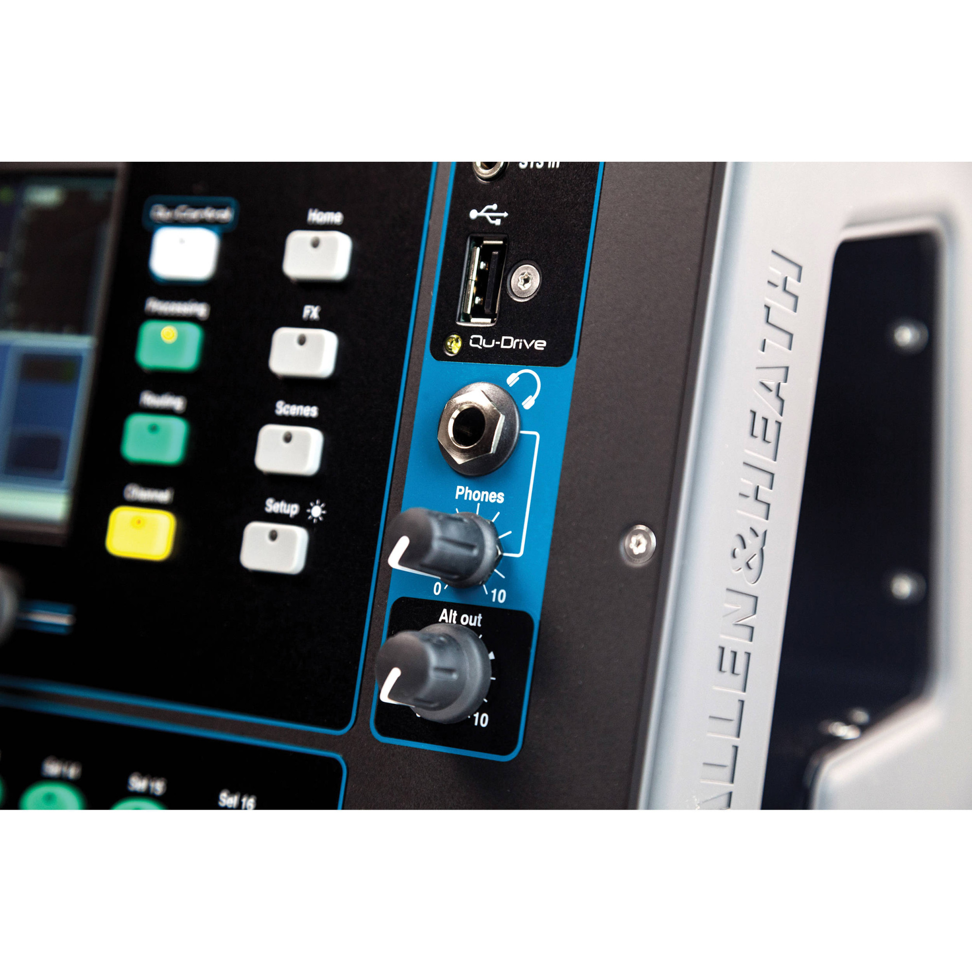 Qu-32 is equipped with 5 high efficiency ARM core processors. Between them, the ARM cores provide state-of-the-art processing, working in parallel to deliver extensive control, instant-on operation, and lightning-fast response, with dedicated cores running the touchscreen and surface, USB streaming, Qu-Drive multi-channel recording/playback, Ethernet control and fader automation. The mixer’s DSP farm exploits next generation dual-core DSPs, giving 10 DSP cores, 8 of which are dedicated to channel and mix processing alone. Qu-32’s DSP architecture employs varied bit depths, tailored to specific algorithms, with 48 bits on critical EQ functions and a 56-bit accumulator on the mix bus where it really counts, allowing every nuance of the audio to be captured in the final mix.