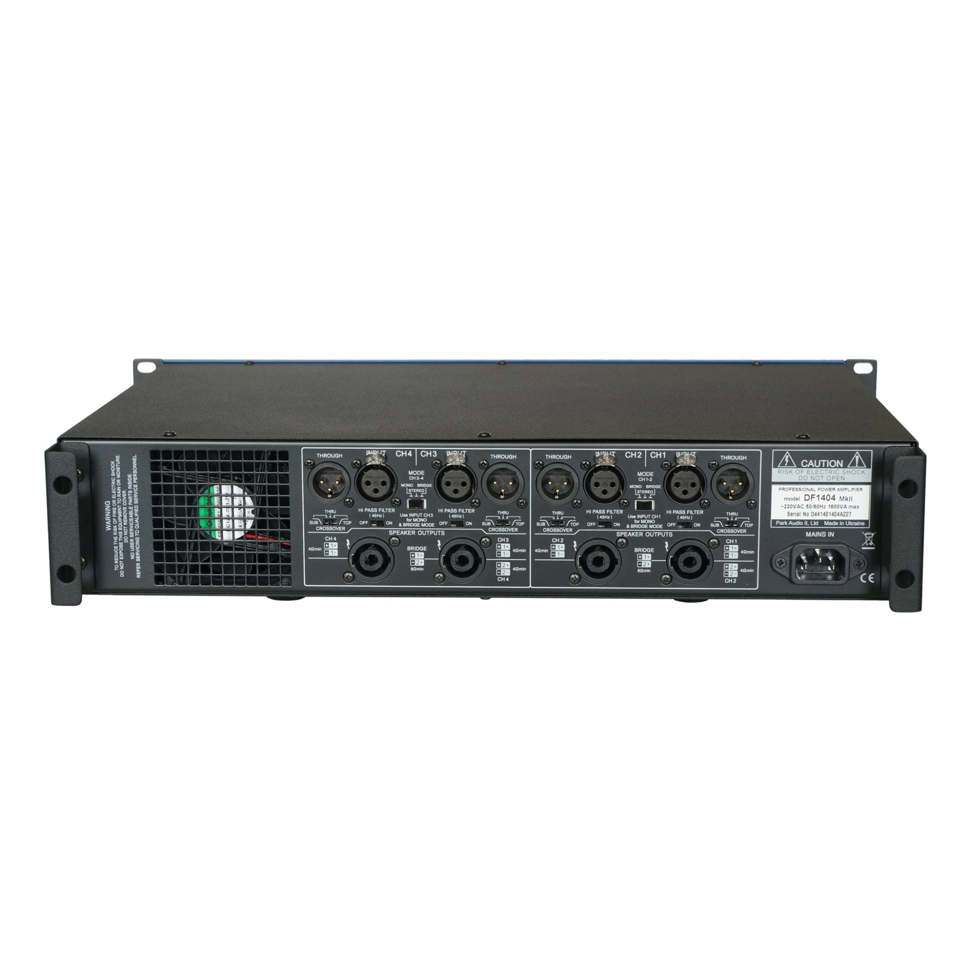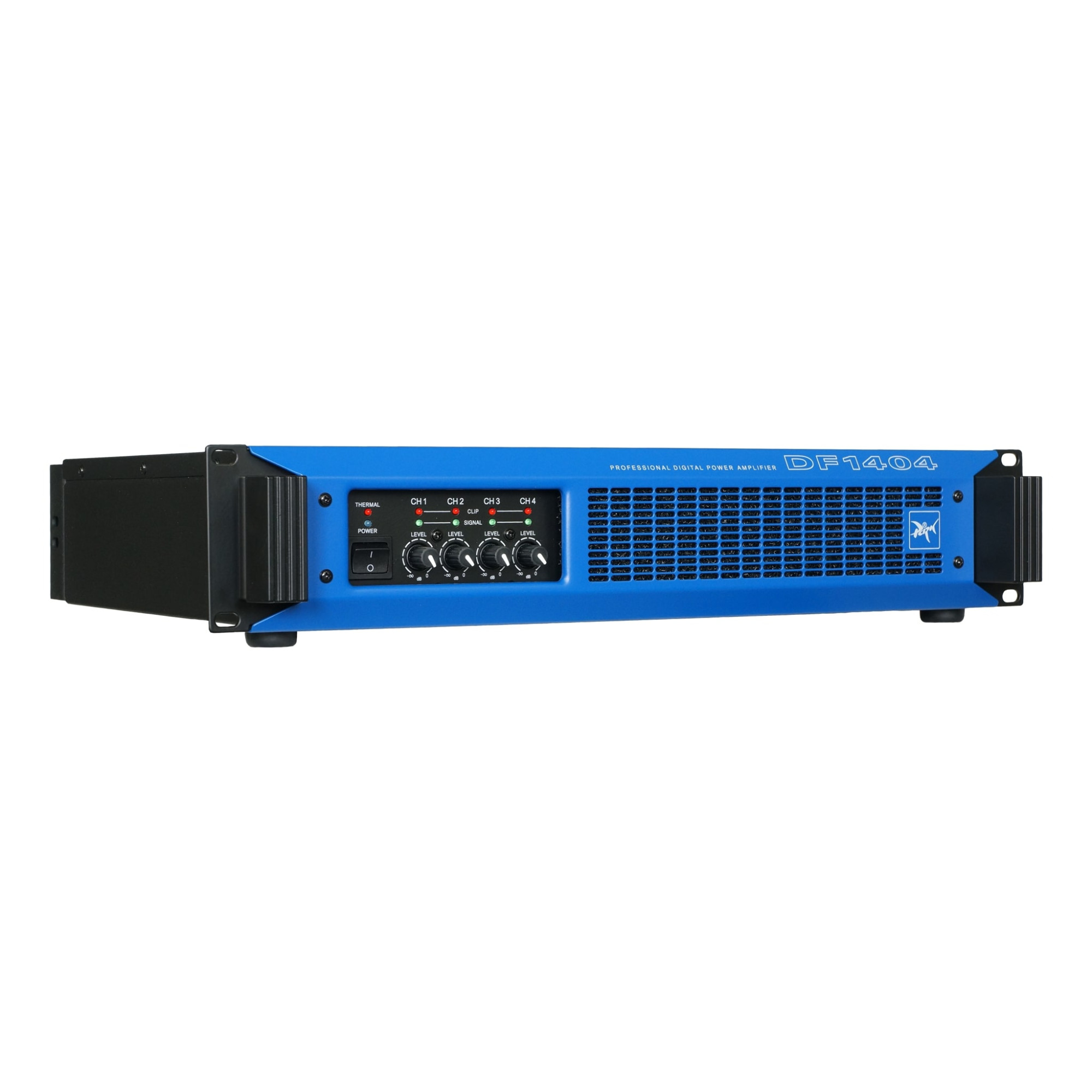 DF series is a series of professional key (digital) power amplifiers, which includes a number of two-channel and four-channel amplifiers with output power from 4x350 W to 2x1600 W. The DF series amplifiers have modern D class circuitry with a high switching frequency of output stage transistors and provide sound signal quality at the level of the best analog amplifiers, have high efficiency and low heat generation. A modern switching power supply not only significantly reduces weight, but ensures reliable and trouble-free operation of amplifiers. The Park Audio DF1404 MkII is a key amplifier for a wide range of applications.