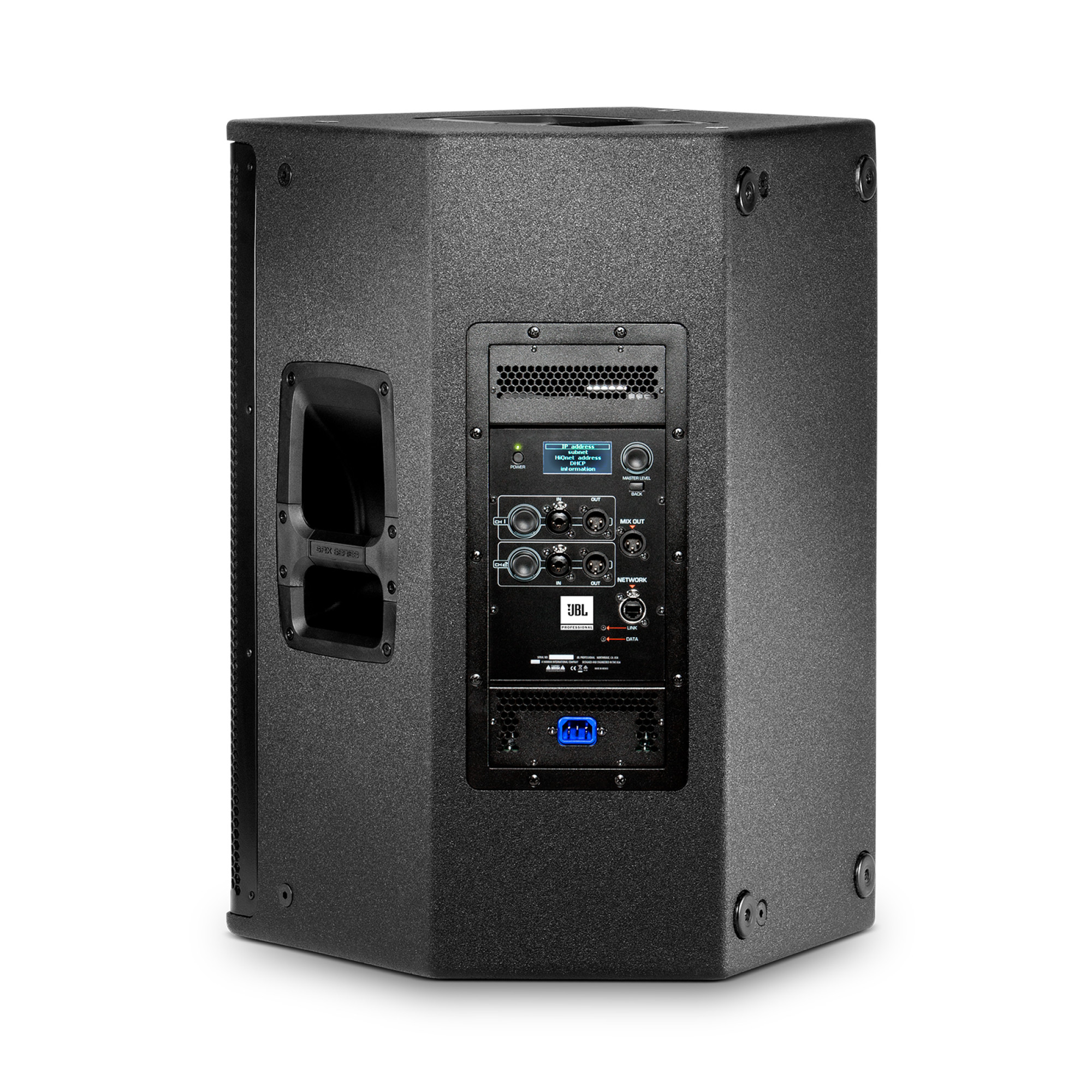 - Unprecendented control: A full suite of User Controllable DSP driven by the SRX800 Series powerful onboard 400MHz Sharc DSP includes 20 PEQ’s, 2 seconds of delay, signal generators, Input mixing, amplifier monitoring, and 50 User Presets. In addition, the system can incorporate V5 JBL Tunings providing compatibility with our flagship Vertec and VTX touring systems. An integrated LCD screen supports fast setup and configuration.