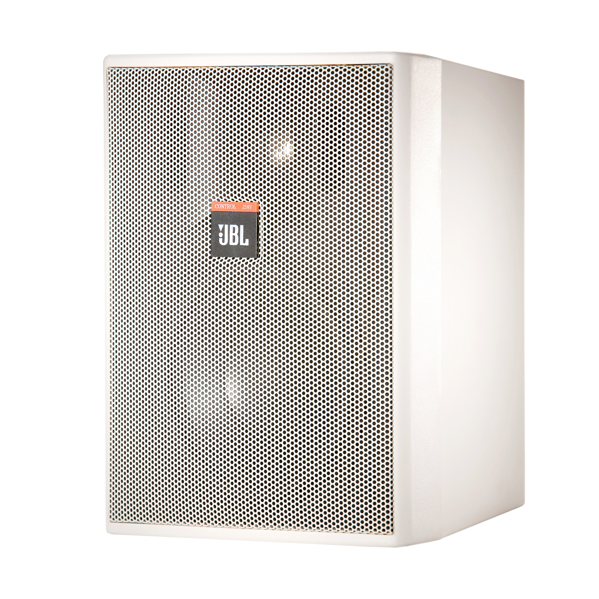 The JBL Control 25AV utilizes a deep cabinet, high power components and complex network to achieve extremely smooth high fidelity performance from a compact 2-way loudspeaker. Premium performance capability and even coverage ensures excellent sound quality throughout the listening area. Magnetic shielding allows use of the speaker in close proximity to video monitors. The top-quality transformer, with reduced saturation, allows use on either 70 volt or 100 volt distributed speaker lines, with similar performance fidelity. In the bypass position, the high 8 Ohm impedance allows use of more speakers on a loudspeaker line. The unique, global patent pending InvisiBall mounting method is simple to install, aims easily, and provides a high degree of theft deterrence. The cabinet accepts a variety of paints to match any décor. Weather resistance is maximized by a stainless steel grille, which is paintable. Coating the woofer in polypropylene and terminating its circumference in JBL’s WeatherEdge, a seamless, butyl rubber extension of the woofer surround, protects critical transducer elements. The polycarbonate tweeter diaphragm is reinforced with a thin film of titanium for added rigidity and endurance. Nickel/zinc rust-resistant terminals ensure a secure input connection. JBL’s exclusive SonicGuard overload protection is virtually inaudible to the listener, ensuring reliability while providing full fidelity sound. The Control 25AV can be used full range or low frequencies can be further augmented with the addition of one of the Control Contractor subwoofer models.