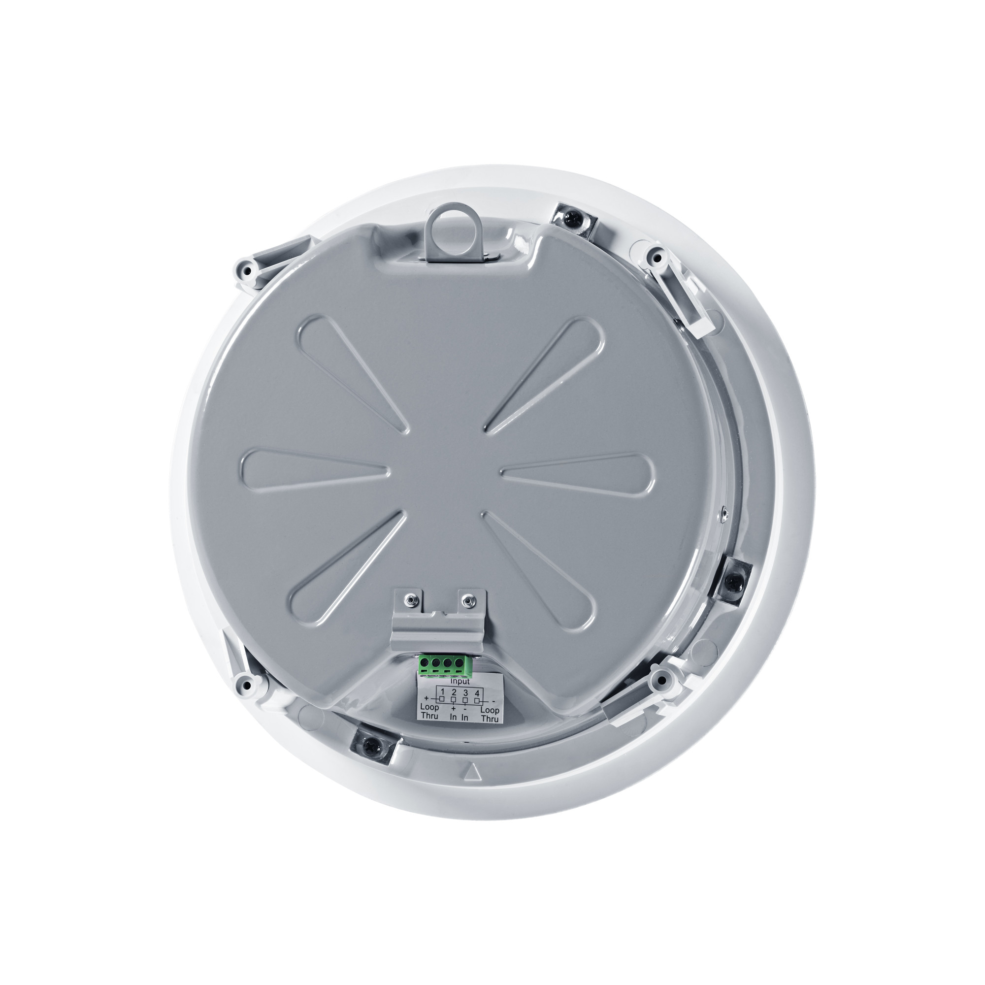 The Electro-Voice EVID-C4.2LP speaker system is a complete two-way ceiling loudspeaker in a very low profile cabinet. The loudspeaker is equipped with a titanium coated dome tweeter connected to a waveguide. The EVID-C4.2LP loudspeaker uses a 2nd order crossover network at 2.5 kHz, and a comprehensive protection circuit protects the network, woofers and tweeters from excessive power levels. The EVID-C4.2LP uses a transformer that allows you to select 1.88 (70V only), 3.75, 7.5 or 15W power delivered to the speaker system through 70V or 100V lines, or bypassing 8 ohms. The choice is made using a convenient switch on the front panel. The perforated grille is finished in semi-gloss white powder coated enamel. The front panel and bezel are made of ABS plastic with UL 94V-0 rating. The rear housing is made of galvanized steel plate. The low profile housing makes it easy to mount it in very narrow spaces. The side cover provides access to a 4-pin terminal block that allows you to connect speakers directly with 12-gauge wires and provides access to additional speakers. Certified by UL1480A and CSA 22.2 205.