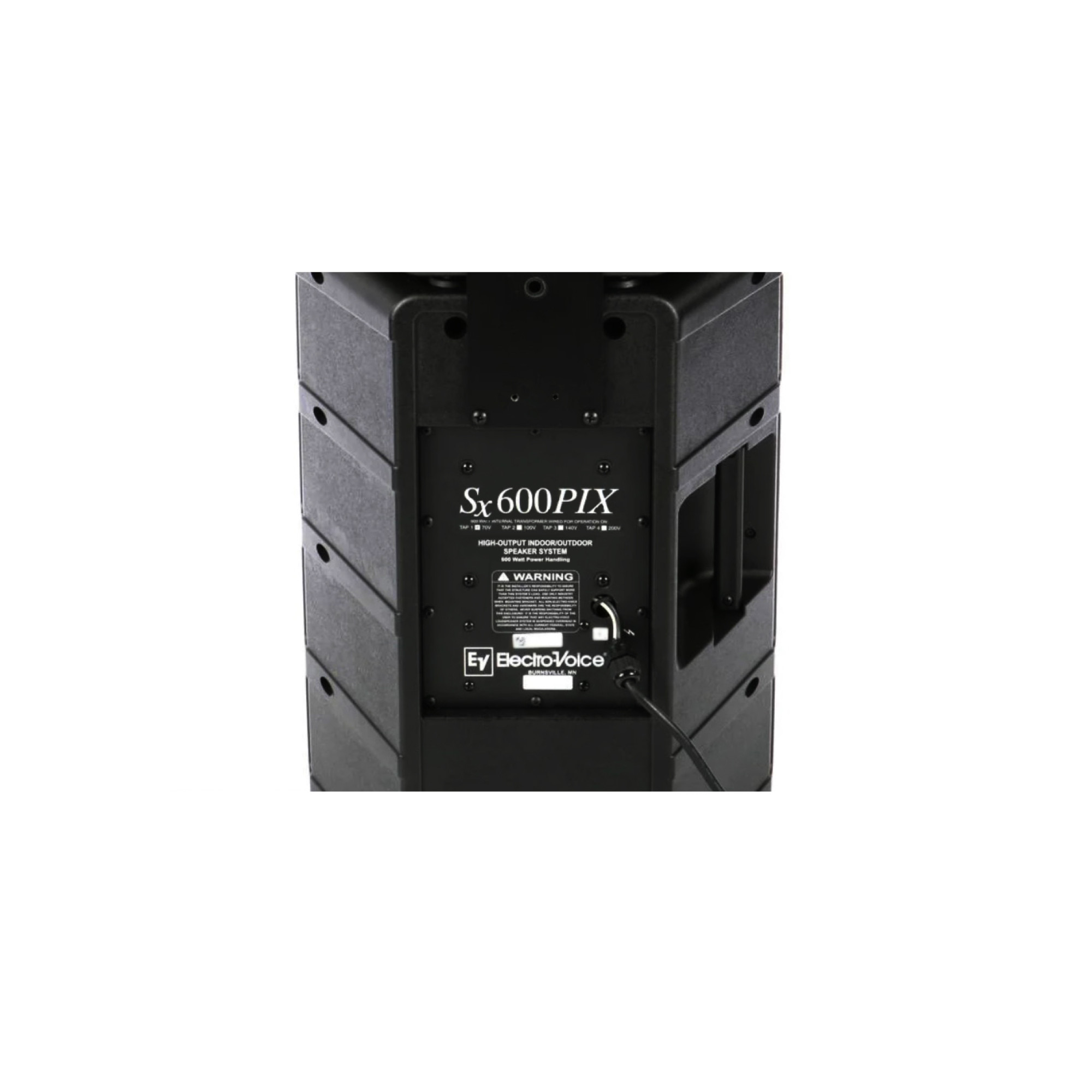 The Electro-Voice Sx600PIX is a weatherproof passive speaker system that delivers powerful full-range sound reinforcement in a variety of indoor and outdoor venues such as stadiums and arenas. Dual 12" woofers and a 2" titanium diaphragm high-frequency compression driver are housed in a vertical array with Varipath constant directivity horn for even coverage. This highly sensitive, high SPL system has a continuous output of 600 watts and a peak output of 2400 watts. The input signal fed to the loudspeakers by the waterproof SJO cable with gland nut is fed to the internal crossover which properly distributes the frequencies between the loudspeakers. The SuperSAM mounting system provides flexible vertical and horizontal adjustment of the weatherproof polymer enclosure. The built-in transformer provides compatibility with DC systems (distributed lines) operating at 70, 100, 140 or 200 volts.