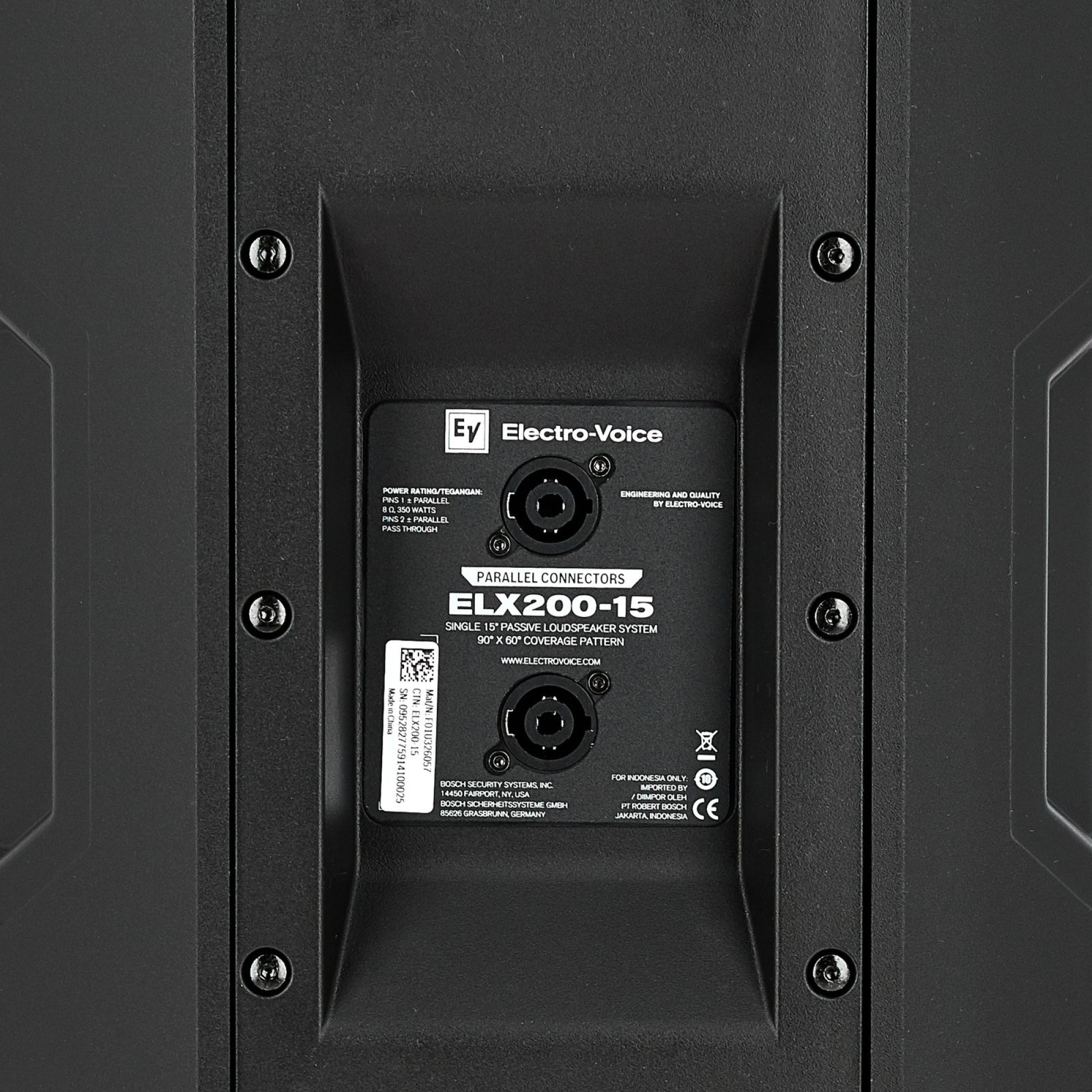 The Electro-Voice ELX200-15 is a 15" two-way 1200-watt passive loudspeaker designed for reliable full range frequency reproduction. Equipped with a 15" woofer and a 1" titanium high frequency compression driver. The polypropylene body and steel grill provide a combination of strength and light weight. Three handles make it easy to carry. The speaker can be positioned either vertically or horizontally, and the pole mount and three M10 suspension points allow for flexible mounting and orientation.