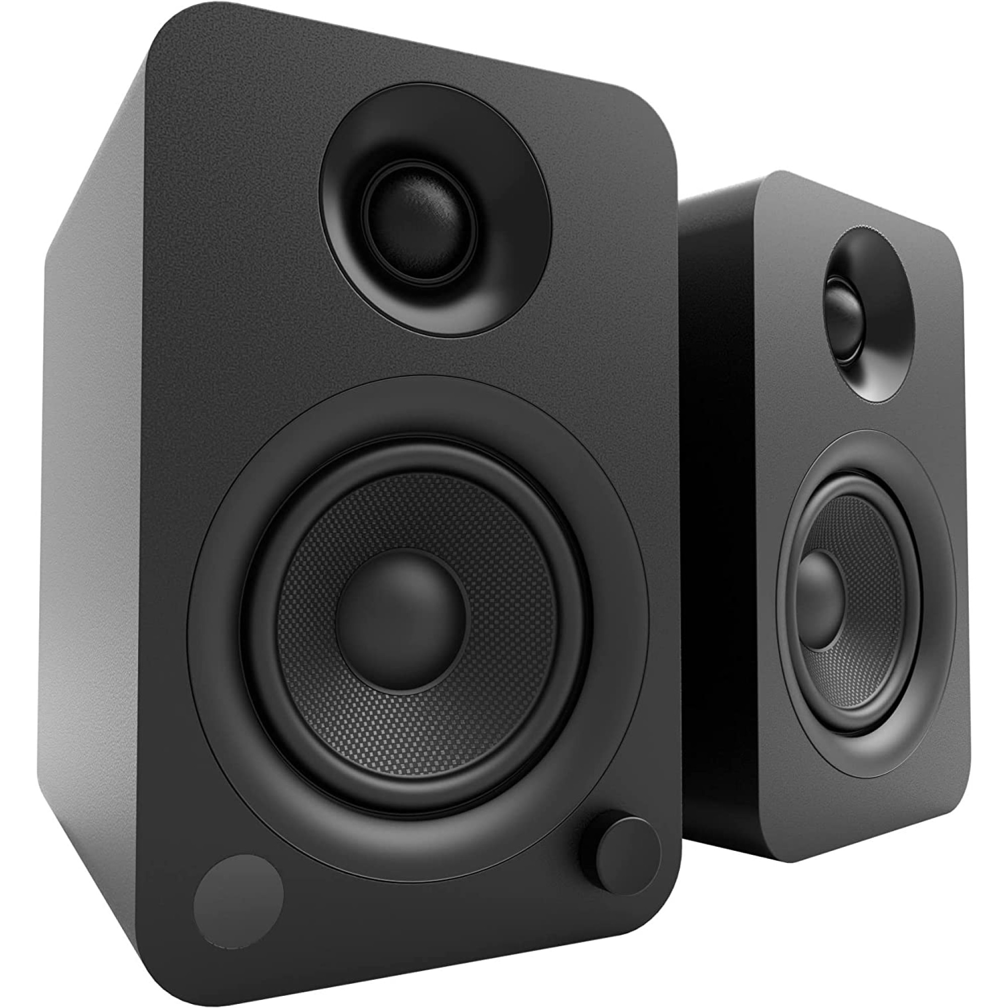 - Each speaker features a 4-inch kevlar woofer and a 1-inch silk dome tweeter