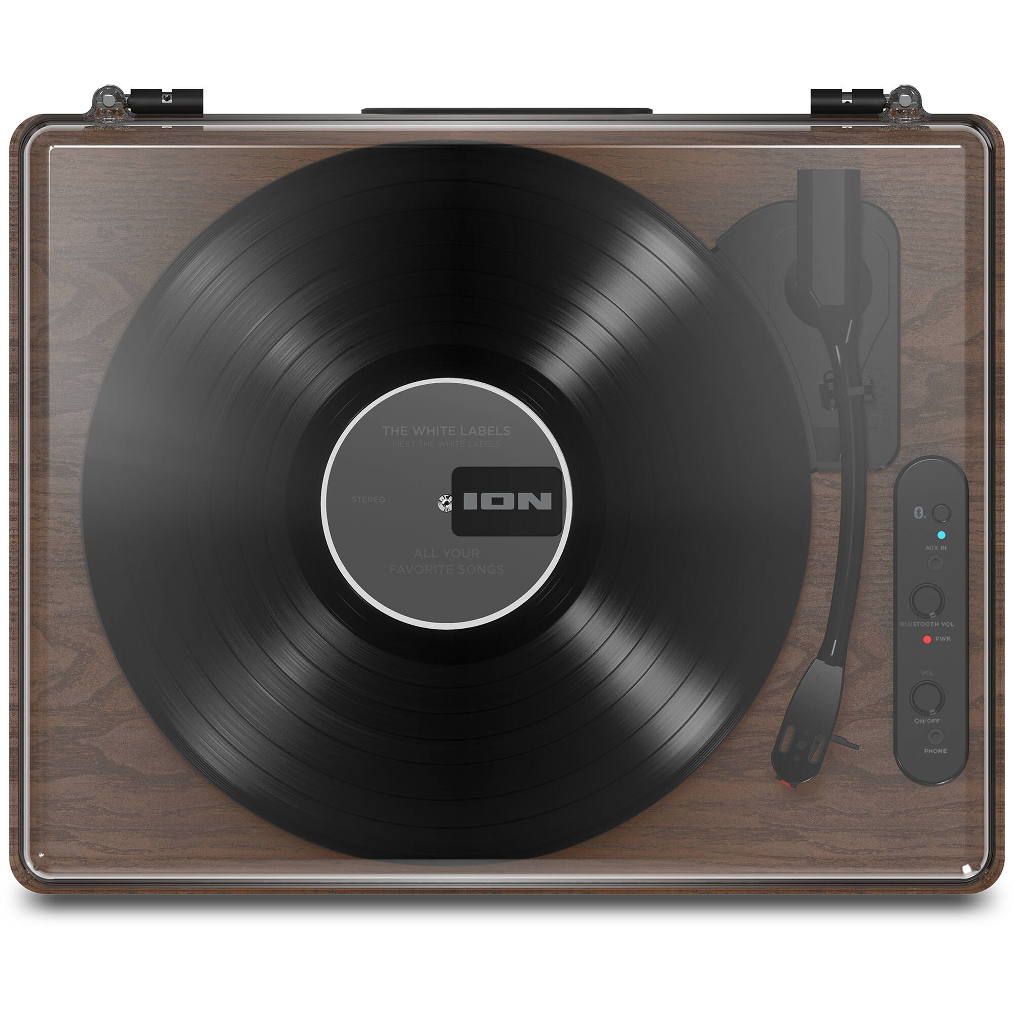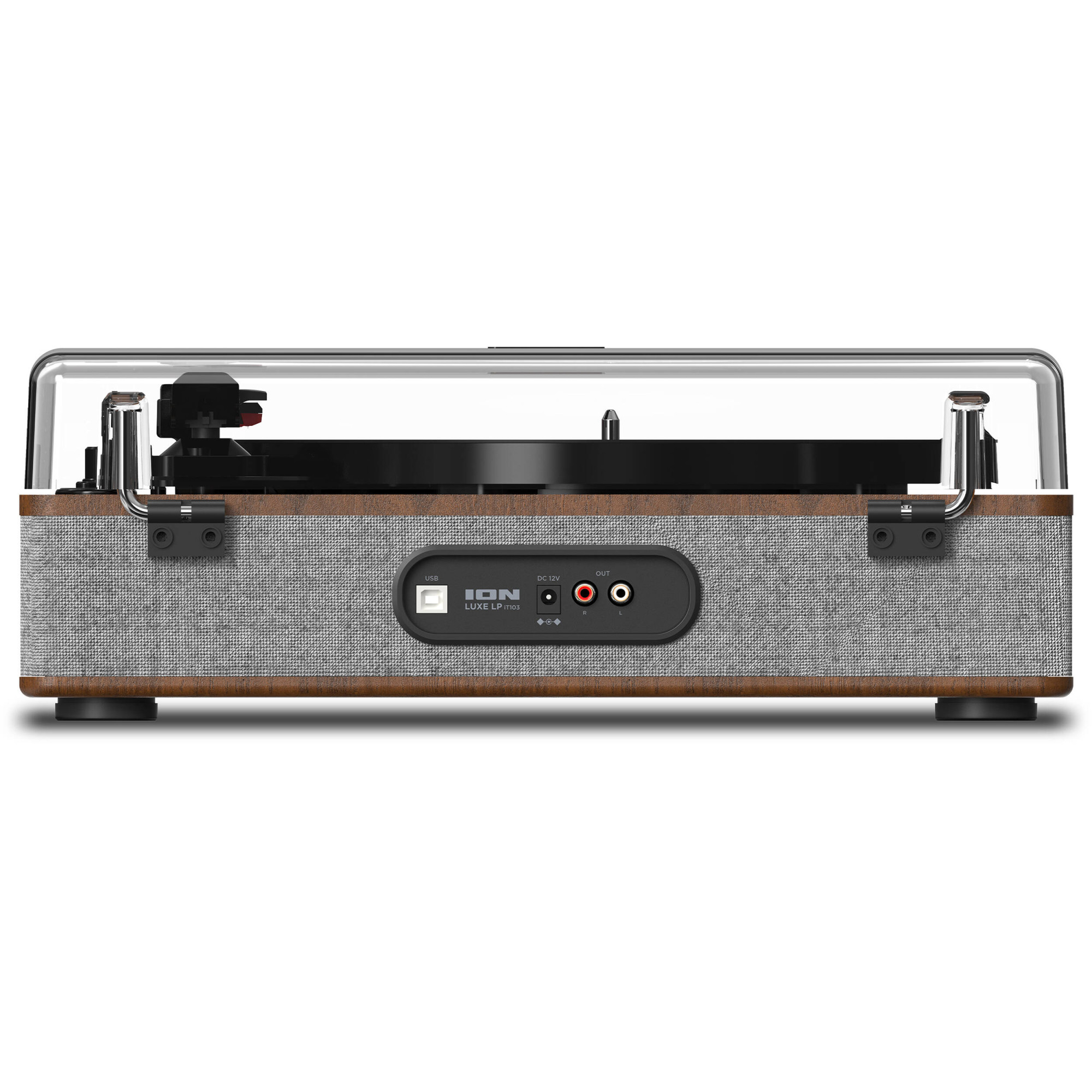 Listen, connect, and convert. ION Luxe LP is a simple all-in-one turntable that makes it easy to enjoy your records and convert them to digital music files on your computer. Luxe LP comes with built-in stereo speakers, so you can just kick back and listen to your records. With Luxe LP, you can send the sound from your records wirelessly to any Bluetooth speaker. Put Luxe LP where it’s convenient for you and put your Bluetooth speaker where it sounds best – the sound is transmitted wirelessly and your days of fumbling with connection cables are finally over. With Luxe LP, transferring your 33 1/3, 45, and 78 RPM records to a Mac or PC is easy. Just connect Luxe LP to your computer with the included USB cable to get started. ION’s exclusive EZ Vinyl Conversion software guides you through the steps and automatically separates the tracks into individual files. You can connect Luxe LP directly to your home stereo system using its standard RCA outputs. A headphone output is also built-in for private listening.