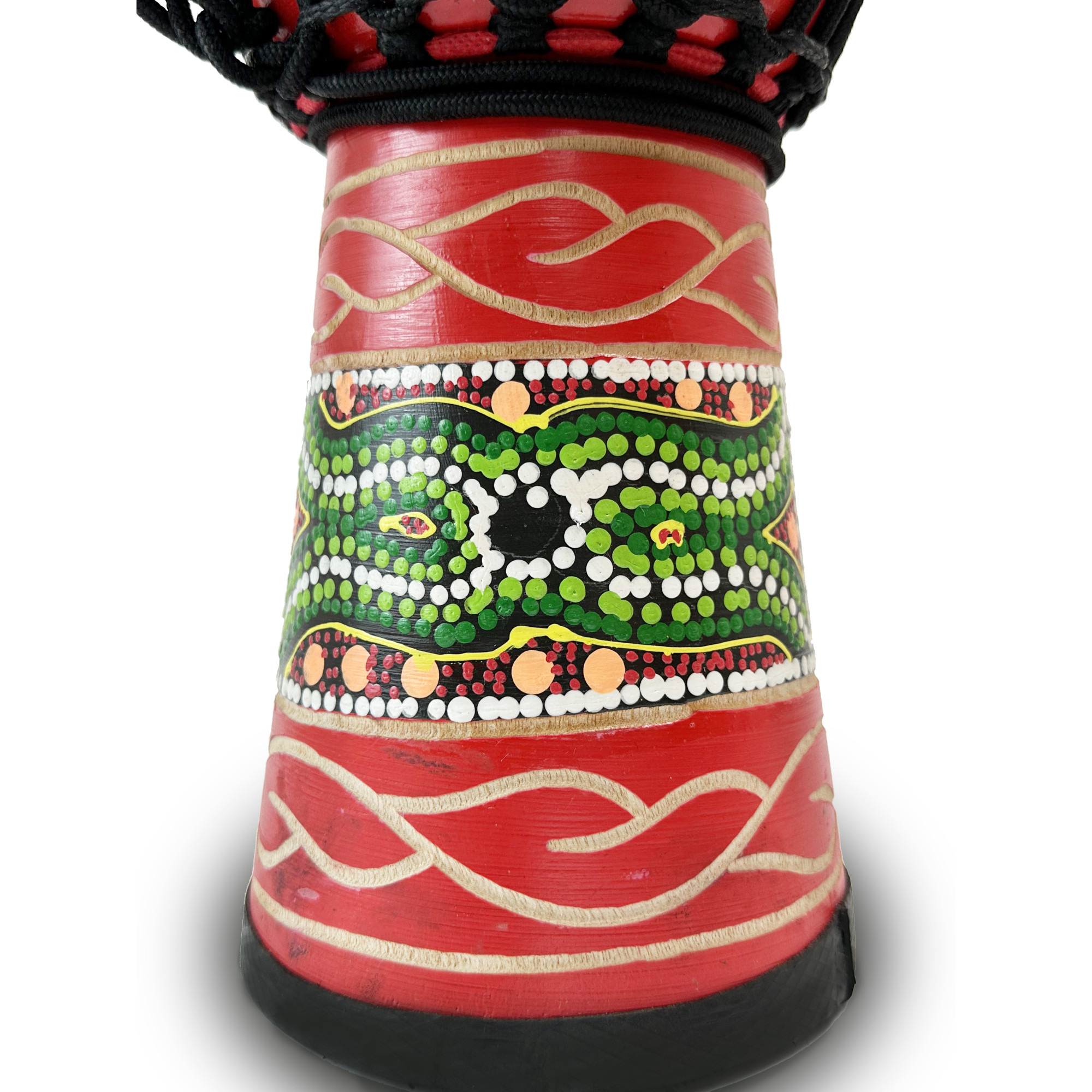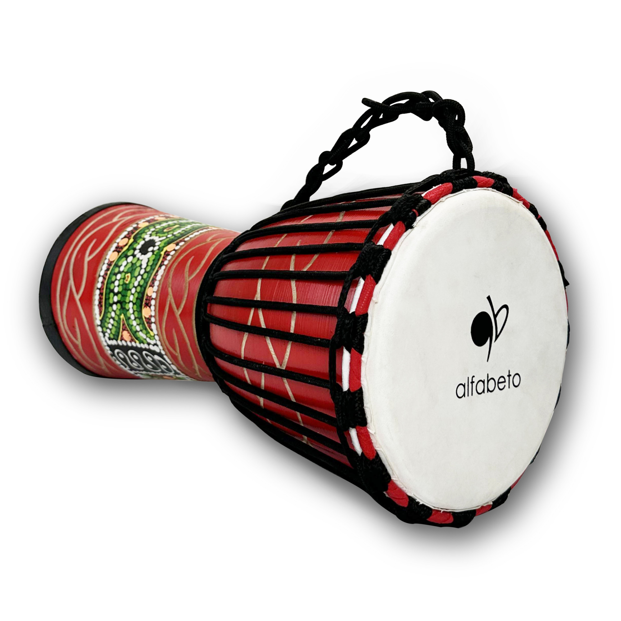 Корпус джембе прикрашений в стилі африканського мистецтва, зі зображенням декоративних елементів. Цей орнамент додає джембе Alfabeto Djember8 екзотичного й аутентичного вигляду, який заохочує до музичної інспірації та допомагає поглибити зв'язок із музичною спадщиною Африки.