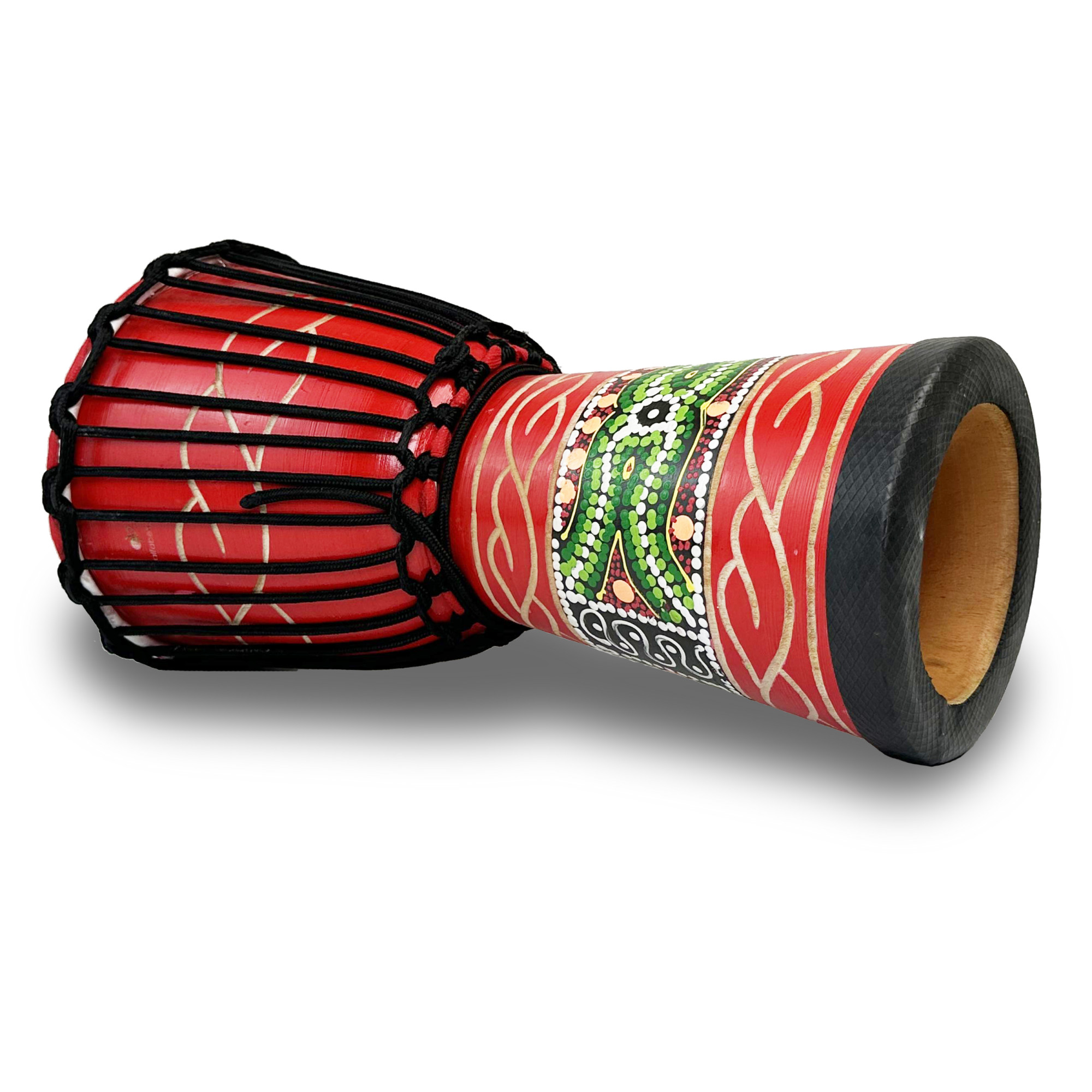 Джембе Djember8 від Alfabeto - це вражаючий музичний інструмент, який поєднує в собі природну красу та вишукану якість виготовлення. Завдяки унікальному поєднанню натуральних матеріалів і ефектного дизайну, цей джембе створений для музикантів, які шукають якісний звук і вишуканий зовнішній вигляд.