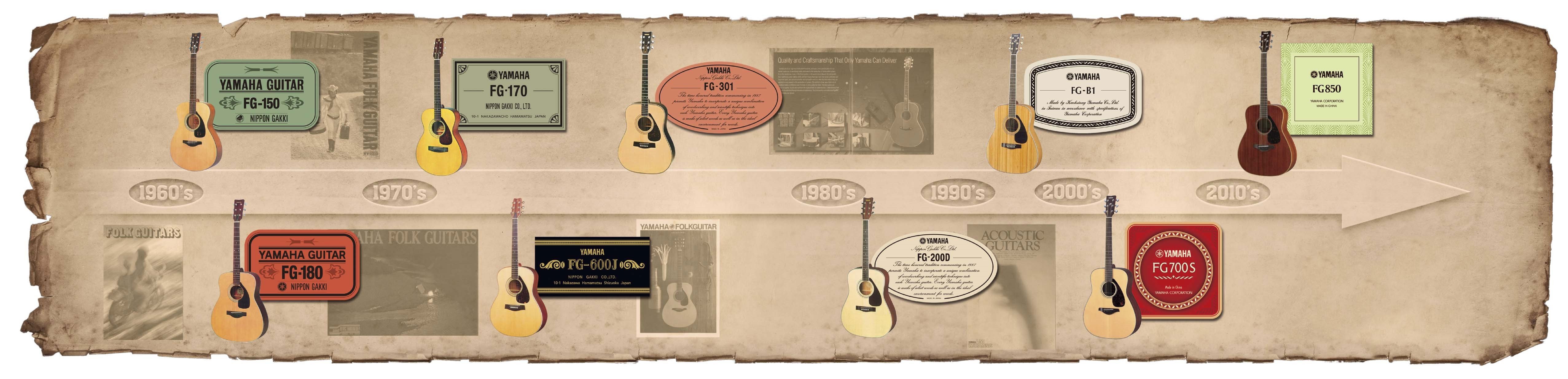 Історія акустичних гітар Yamaha серії FG почалася в 1966 році з виходом моделей FG180 і FG150. Протягом наступних 50 років було розроблено та вироблено кілька поколінь гітар - кожна з яких була ідеальним інструментом для сучасних музикантів. В цілому, з 1966 року було випущено більше 200 моделей серії FG.