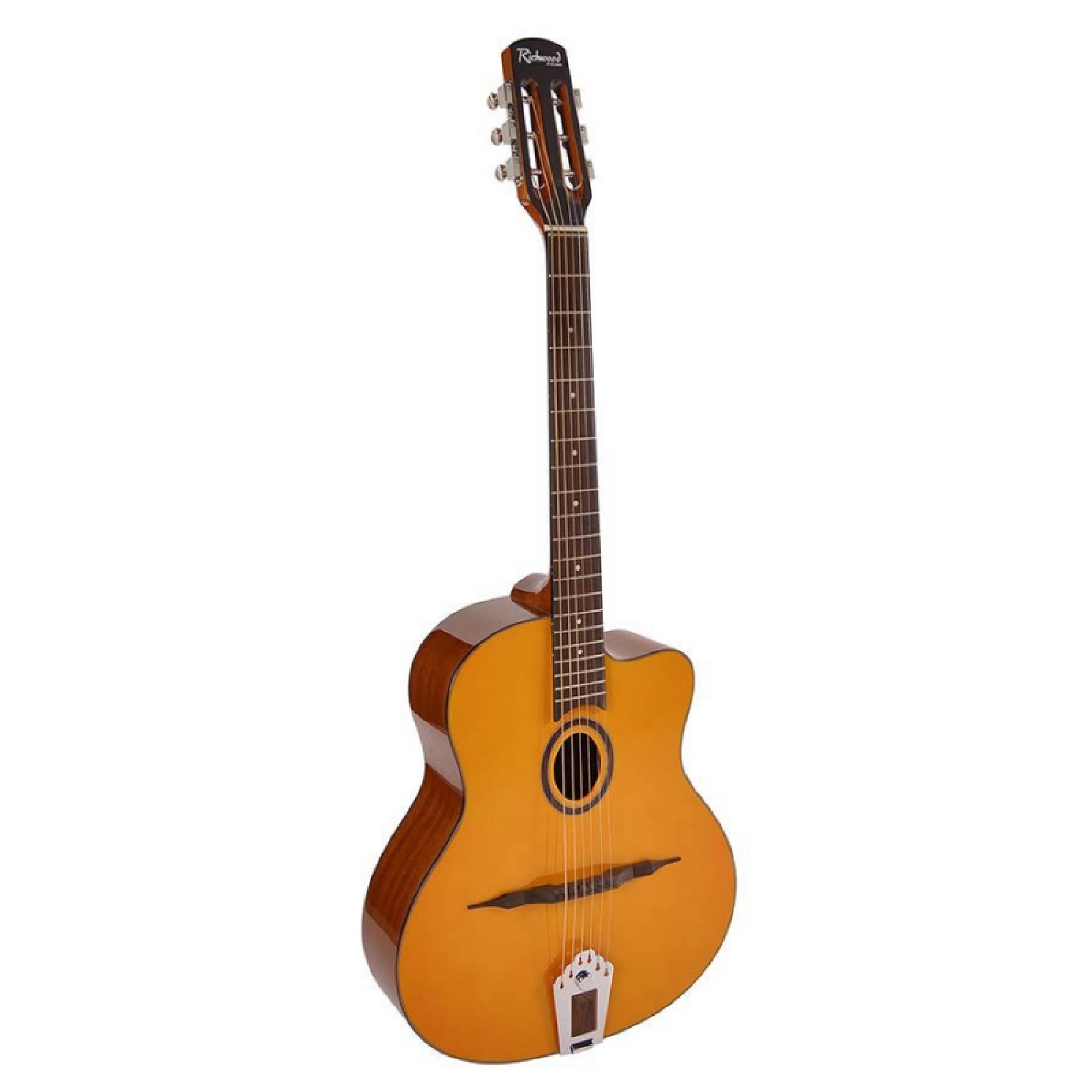 Зробленої знаменитим легендарним гітаристом Джанго Рейнхардтом в Парижі в 1930-х роках, оригінальна модель була необхідна для проектування швидких арпеджіо гітариста над його чотирма акомпаніаторами. Richwood RM-70-NT має всі підстави, необхідні для продовження традиції.