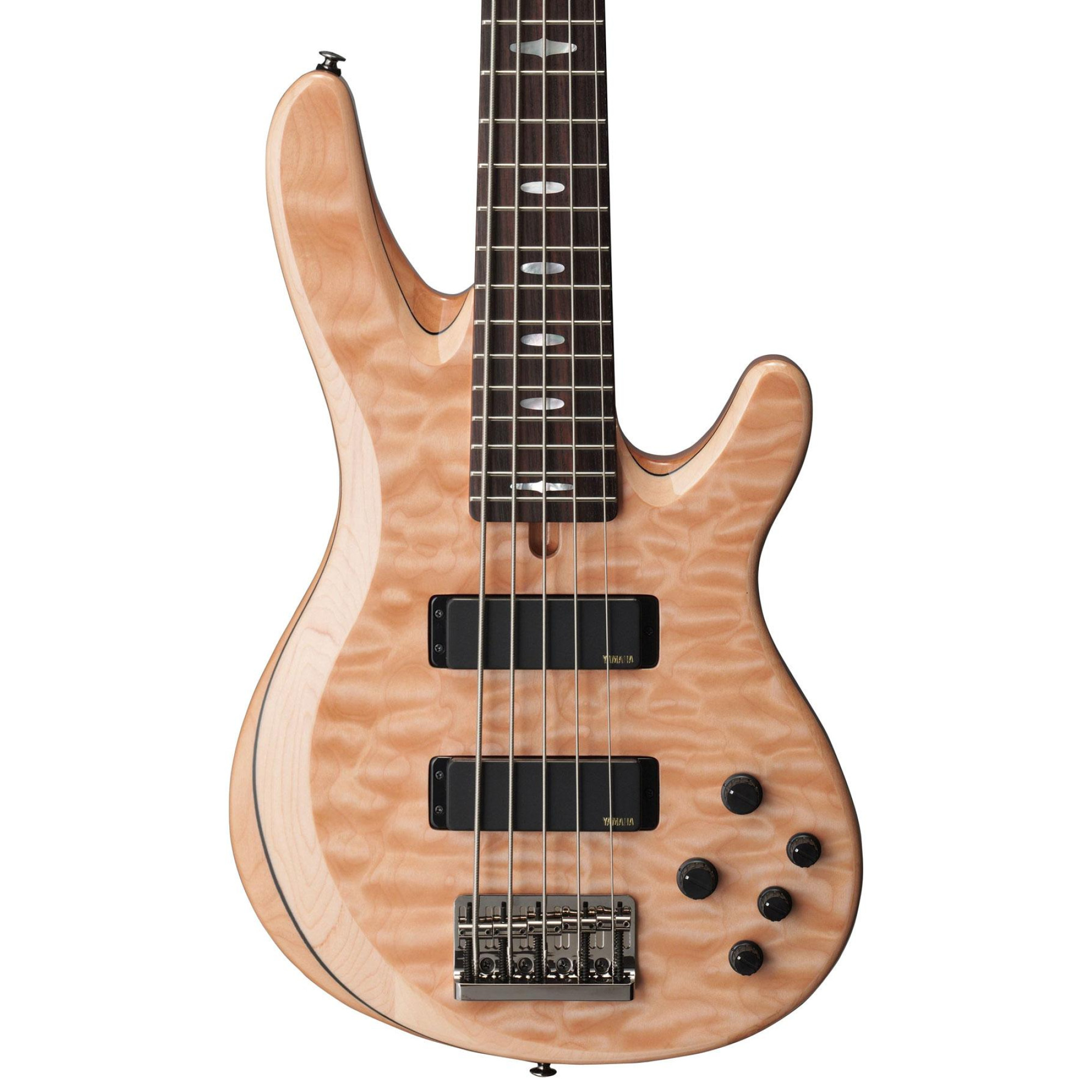 Корпус TRB1005J зроблений з добірної вільхи із топом з хвилястого клена, що забезпечує збалансоване звучання з виразною серединою і чіткими верхами, завдяки чому цей бас є універсальним для будь-якого музичного жанру. Бридж виготовлений із латуні, що сприяє ефективній передачі вібрацій струн на корпус і дозволяє точно налаштовувати висоту струн. Бас-гітара оснащена пасивними звукознімачами Alnico V з шумозаглушенням і 3-смуговим активним еквалайзером Yamaha, що забезпечує прозоре і контрольоване звучання. Модель пропонує налаштування гучності і балансу, що дозволяє музикантам адаптувати звучання під свої потреби.