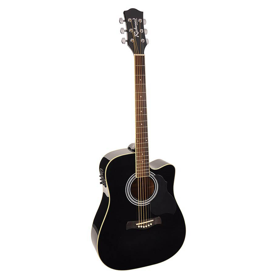 Модель RD-12-CEBK є ідеальною для входження у світ гітар зі сталевими струнами. Якість Richwood постійно покращується, і новітня продукція здивує Вас тим, яку якість Ви отримаєте за такою ціною. Для виготовлення цієї гітари не використовуються породи деревини, що перебувають під загрозою зникнення. Топ виготовлений з ялини, що надає інструменту гарного звучання. Нижня дека та обичайки виконані з липи, легкої та досить м'якої деревини. Гітара виконана в чорному кольорі.