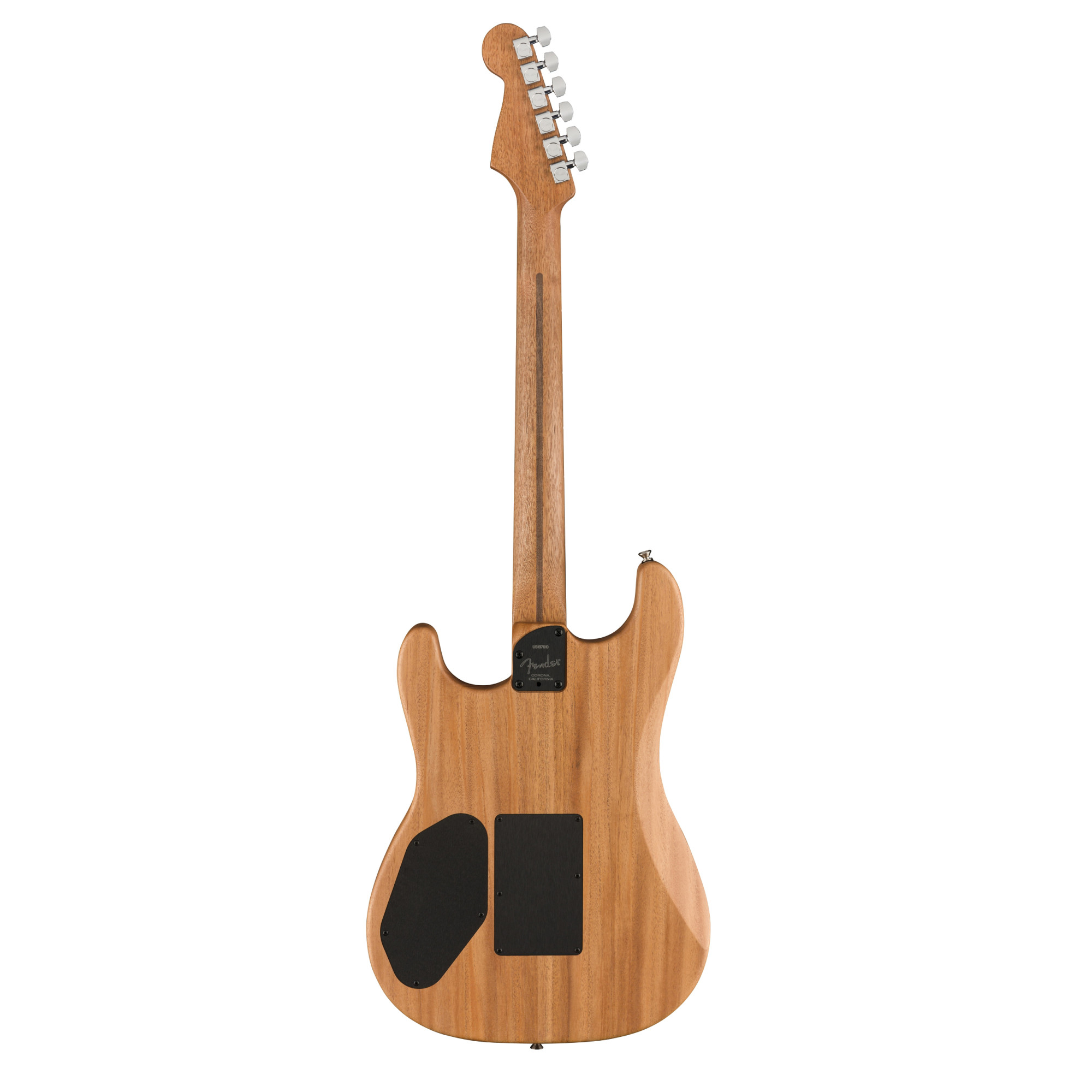 З першого погляду Acoustasonic Stratocaster здається знайомим і культовим, зі зміщеним подвійним резонатором і контурами передпліччя і спинки. Але при найближчому розгляді виявляються деякі унікальні особливості. На відміну від класичного Strat, Acoustasonic - Це не цільнокорпусна, а напівпорожниста гітара, з корпусом з червоного дерева і цільною декою з ялини Sitka. У верхній частині гітари акустичні елементи представлені скульптурним звуковим отвором і традиційним бриджем, а електричні компоненти містять магнітний звукознімач, подвійні ручки керування і п'ятипозиційний селекторний перемикач.