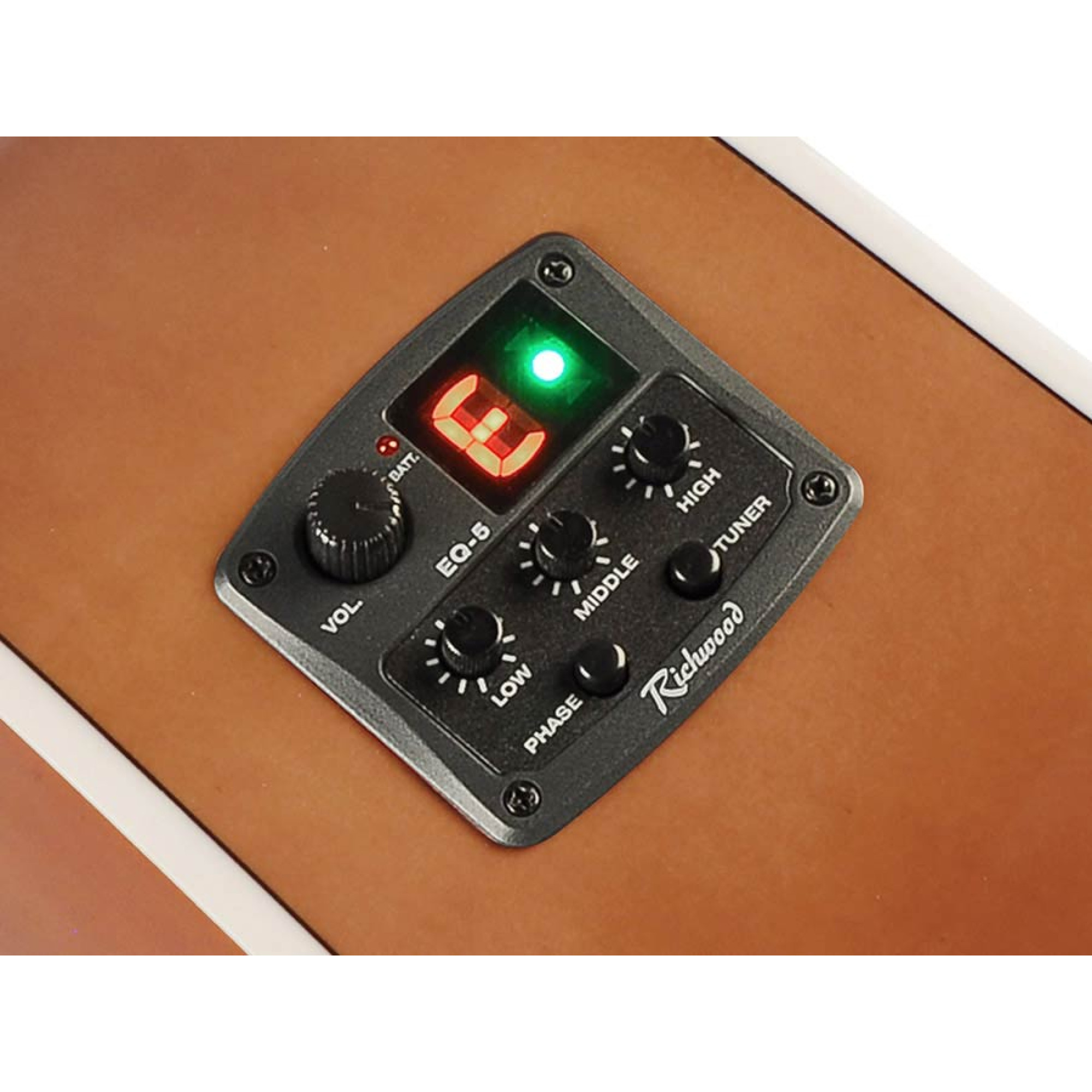 Модель RD-12-CE - це ідеальний вхід в світ гітар зі сталевими струнами. Якість Richwood постійно поліпшується і остання продукція здивує Вас тим, які гітари Ви отримаєте при такому бюджеті. Для виготовлення цієї гітари не використовуються породи деревини, які знаходяться під загрозою зникнення.