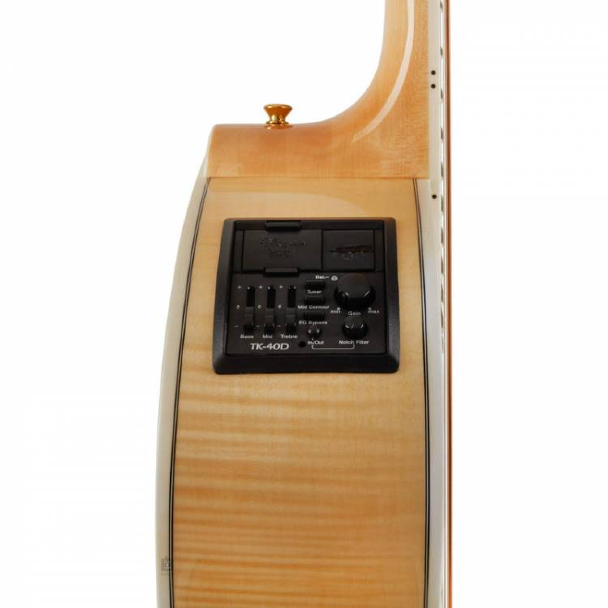 Попередній підсилювач TK-40D з вбудованим тюнером, трисмуговим еквалайзером та різноманітними регуляторами дозволяє налаштувати звук згідно з особистими уподобаннями музиканта, а також забезпечує високу якість звучання в будь-яких умовах. Гітара також оснащена головкою грифа з лавру, розеткою з абалона та інкрустацією на 12-му ладу, що надає їй вишуканий вигляд. Золоті литі кілки з перловими ґудзиками додають до цього інструменту нотку елегантності.