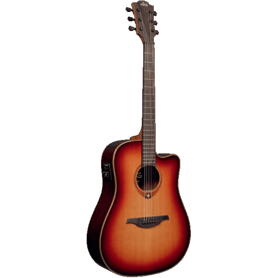 Електроакустична гітара LAG Tramontane T100DCE використовується в живих виступах, а також підходить для запису в студії. Має вмонтований звукознімач і передпідсилювач.