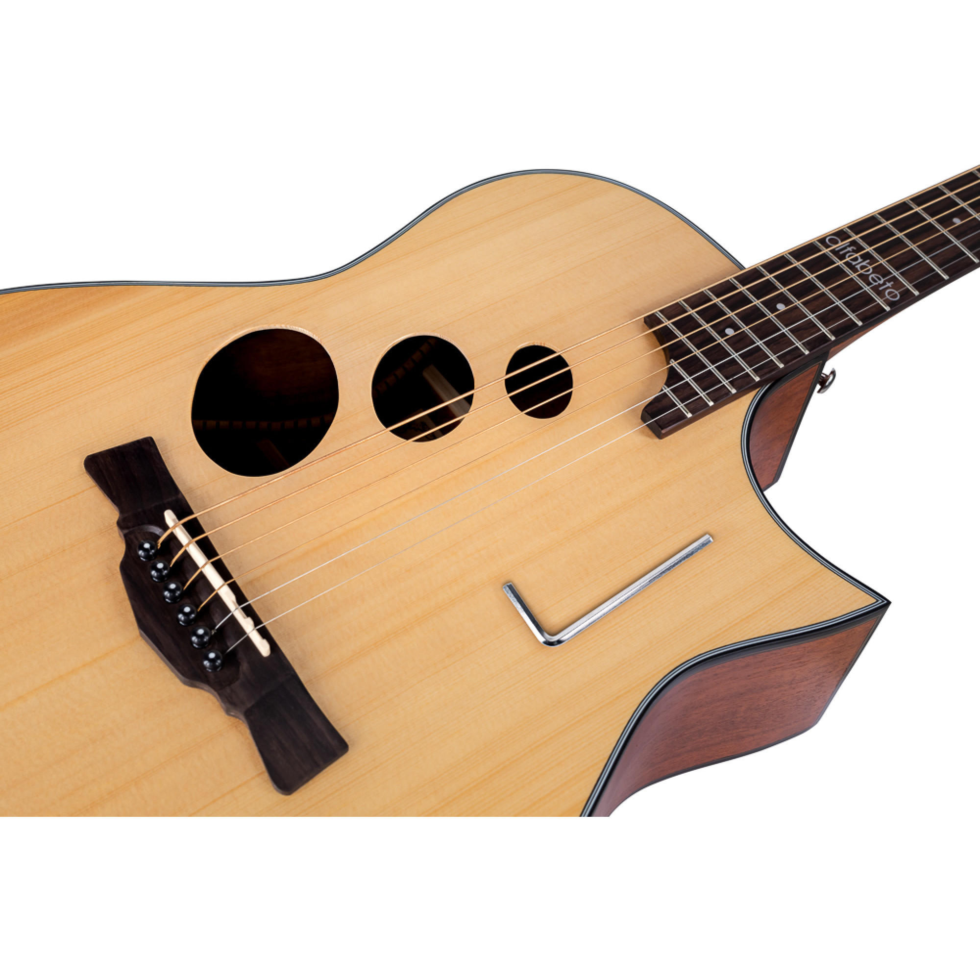 Для тих, хто шукає футуристичну електроакустичну гітару зі зміщеними звуковими отворами – Alfabeto GammaEQ стане відмінним варіантом. До того ж в комплекті йде елегантний чохол хорошої якості, тому Вам не доведеться додатково купувати цей важливий аксесуар.