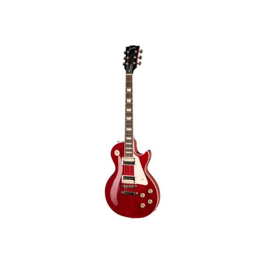 Les Paul Classic має елегантне покриття Translucent Cherry, яке надає інструменту стильний і виразний вигляд. Корпус виготовлений з червоного дерева, а верхня дека – з клену, що забезпечує чудовий тон. Крім того, для зменшення ваги, гітара має 9 отворів у корпусі, що робить її легшою та зручнішою для гри на сцені. Профіль грифа Slim Taper із палісандровою накладкою робить гру на інструменті комфортною. Гітара оснащена звукознімачами Burstbucker, які забезпечують насичений середній діапазон та чудовий верхній тон, створюючи характерне для Gibson звучання.